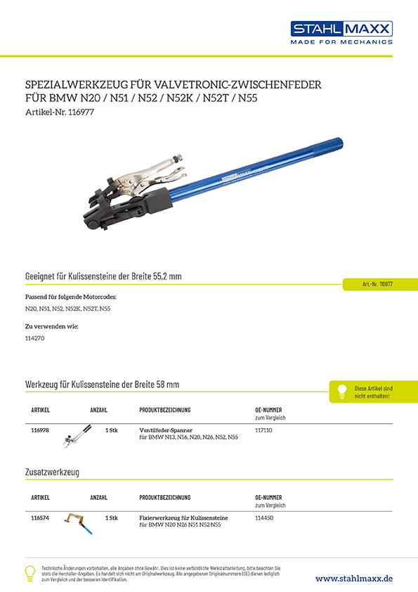 Vergleichsnummern zu "Valvetronic Ventilfeder-Spanner, 55,2 mm, für BMW N20 N51 N52 N52K N52T N55"