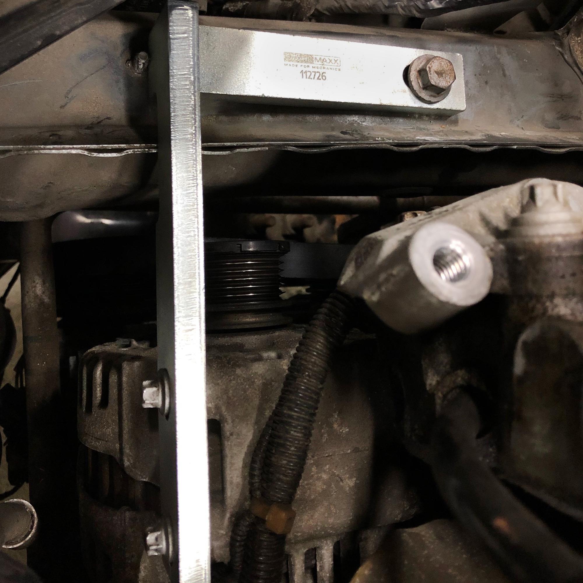 Da bei diesen Fahrzeugen eine Abstützung mittels Motorbrücke sehr schwierig ist und diese für noch engere Platzverhältnisse sorgen würde, kann man mit diesem Montagewinkel den Motor an der Generatorbefestigung abfangen.