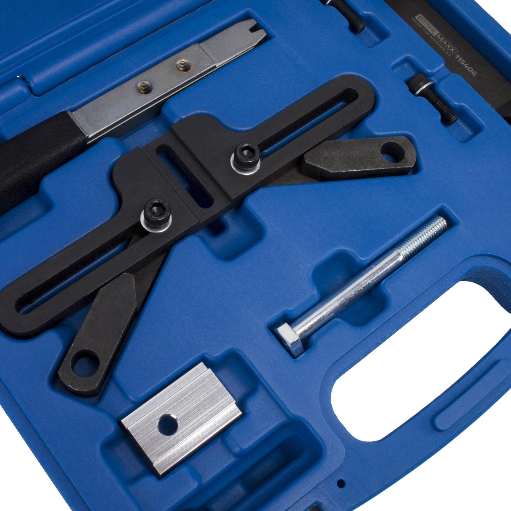 Spezialwerkzeug zum Blockieren der Kurbelwellen bei verschiedenen BMW Motoren. Wird verwendet beim Lösen von Schwungrädern, Kurbelwellen-Riemenscheiben oder anderen Arbeiten, bei denen ein Blockieren der Kurbelwelle notwendig ist.