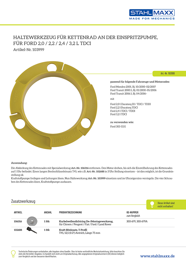 Weiterführende Links zu "Haltewerkzeug für Kettenrad an der Einspritzpumpe, für Ford"