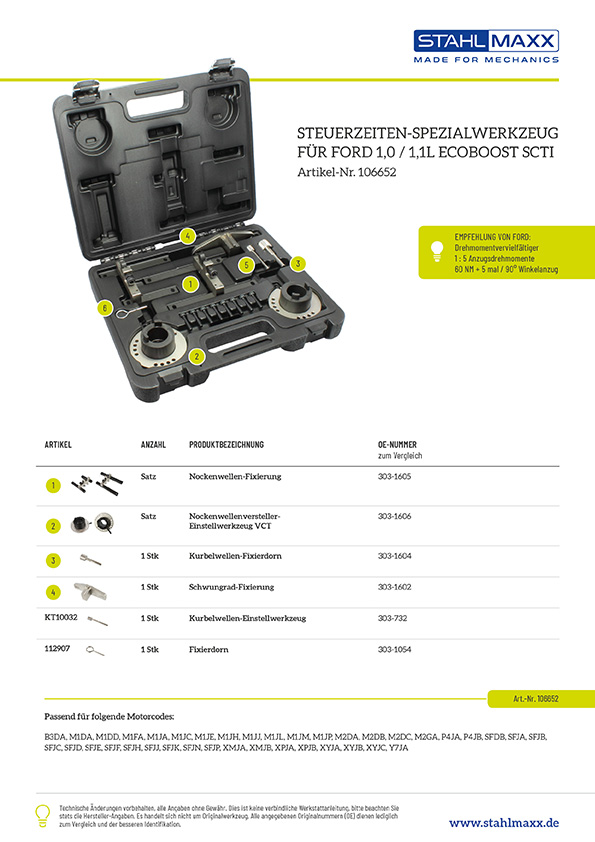 Für Ford 1,0 und 1,1 l, 3-Zyl. Ecoboost / ECOnetic / SCTI Motoren ab 2012 mit VCT