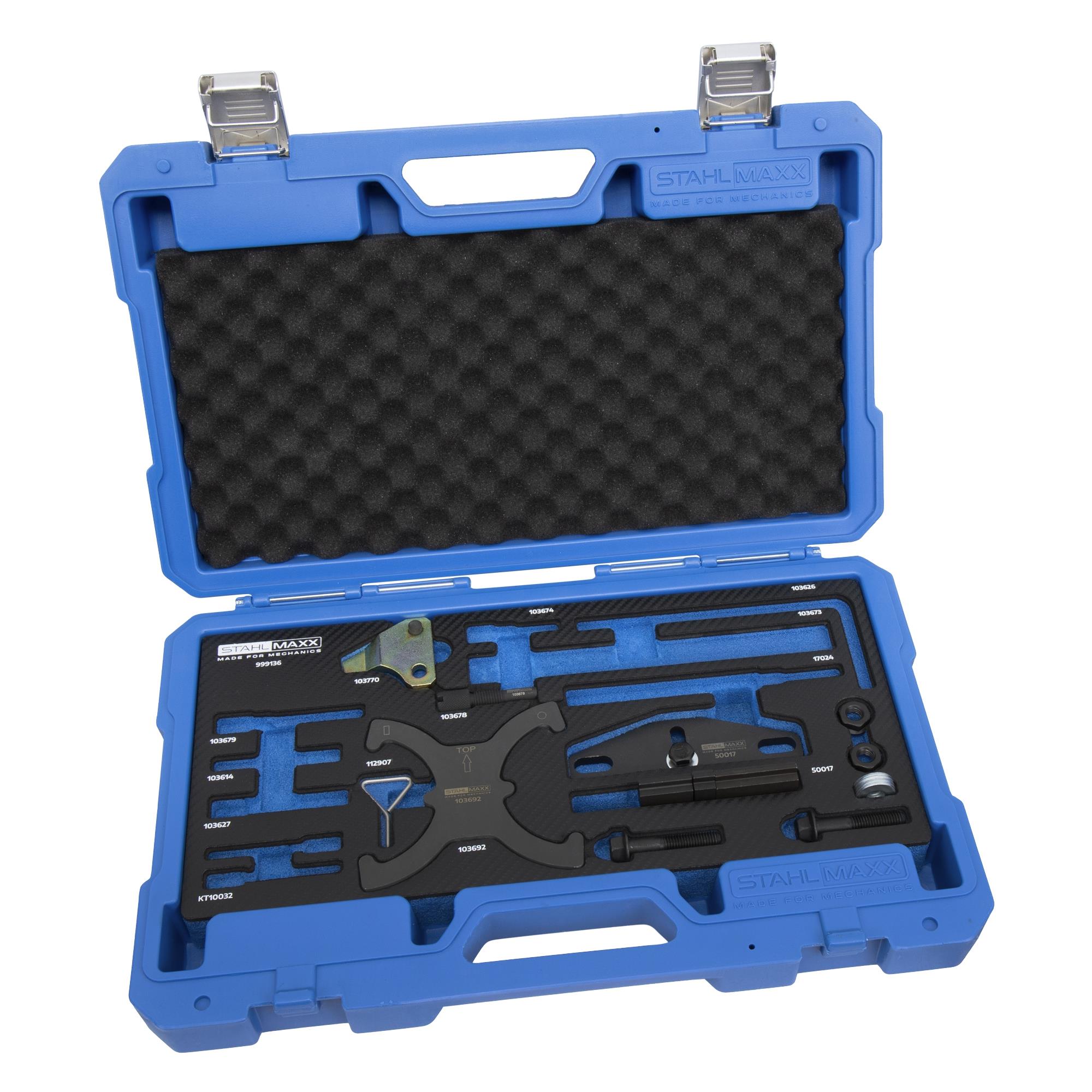 Dieses Werkzeug benötigen Sie für Instandsetzungsarbeiten im Bereich der Motorsteuerung bei den unten aufgeführten Ford und Volvo Motoren. Der professionelle Spezialwerkzeugsatz wird in einem robusten Koffer mit einer Schaumstoffeinlage in Carbon-Optik geliefert, welche auch für gängige Werkstattwagen geeignet ist. Der Spezialwerkzeugsatz enthält Werkzeuge zur Nockenwellenarretierung, Kurbelwellenarretierung, Schwungradarretierung etc.