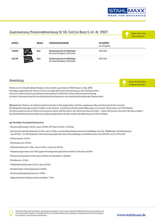 Vergleichsnummern zu "Schwungrad Blockierwerkzeug, Gen. 2 Ecoboost, EcoBlue, Duratec, wie Ford 303-1643"