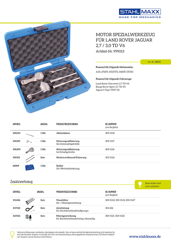 Weiterführende Links zu "Steuerzeitenwerkzeug für Land Rover Jaguar 2,7 3,0 TD V6"