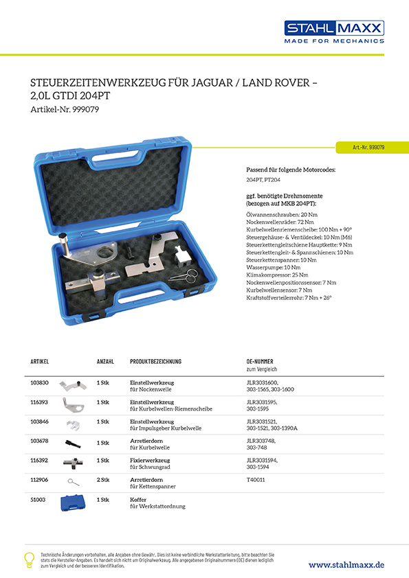 Vergleichsnummern zu "Steuerzeitenwerkzeug für Jaguar / Land Rover JLR 2,0 GTDi 204PT"