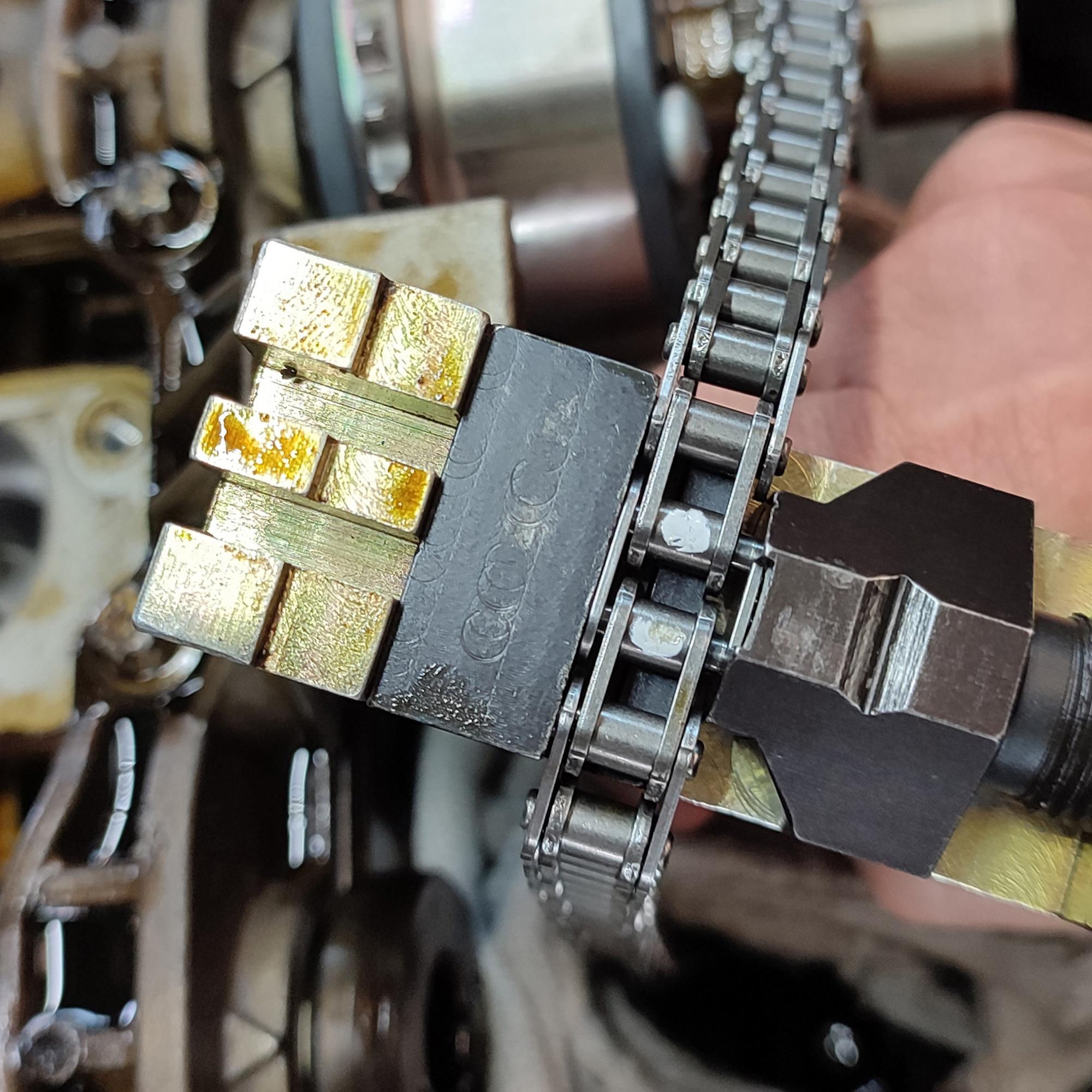 - Zum Vernieten von Simplex- und Duplex-Steuerketten, beispielsweise bei nahezu allen Mercedes Benzin- und Diesel-Motoren.