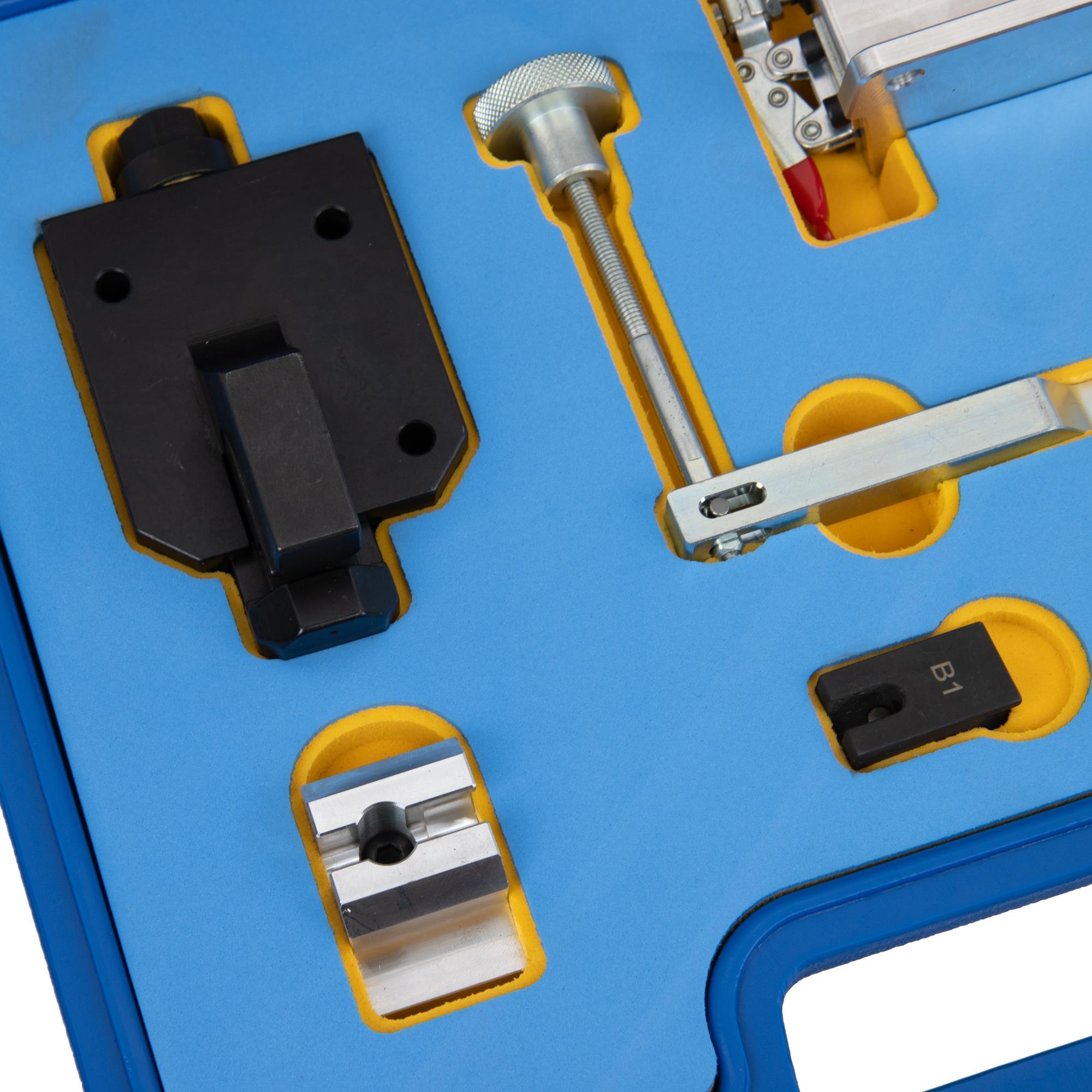 bestehend aus: Spannschienen Rücksetzwerkzeug, Steuerketten-Klemmhalter, Nietwerkzeug inkl. einen Adapter und 3 Einlegern