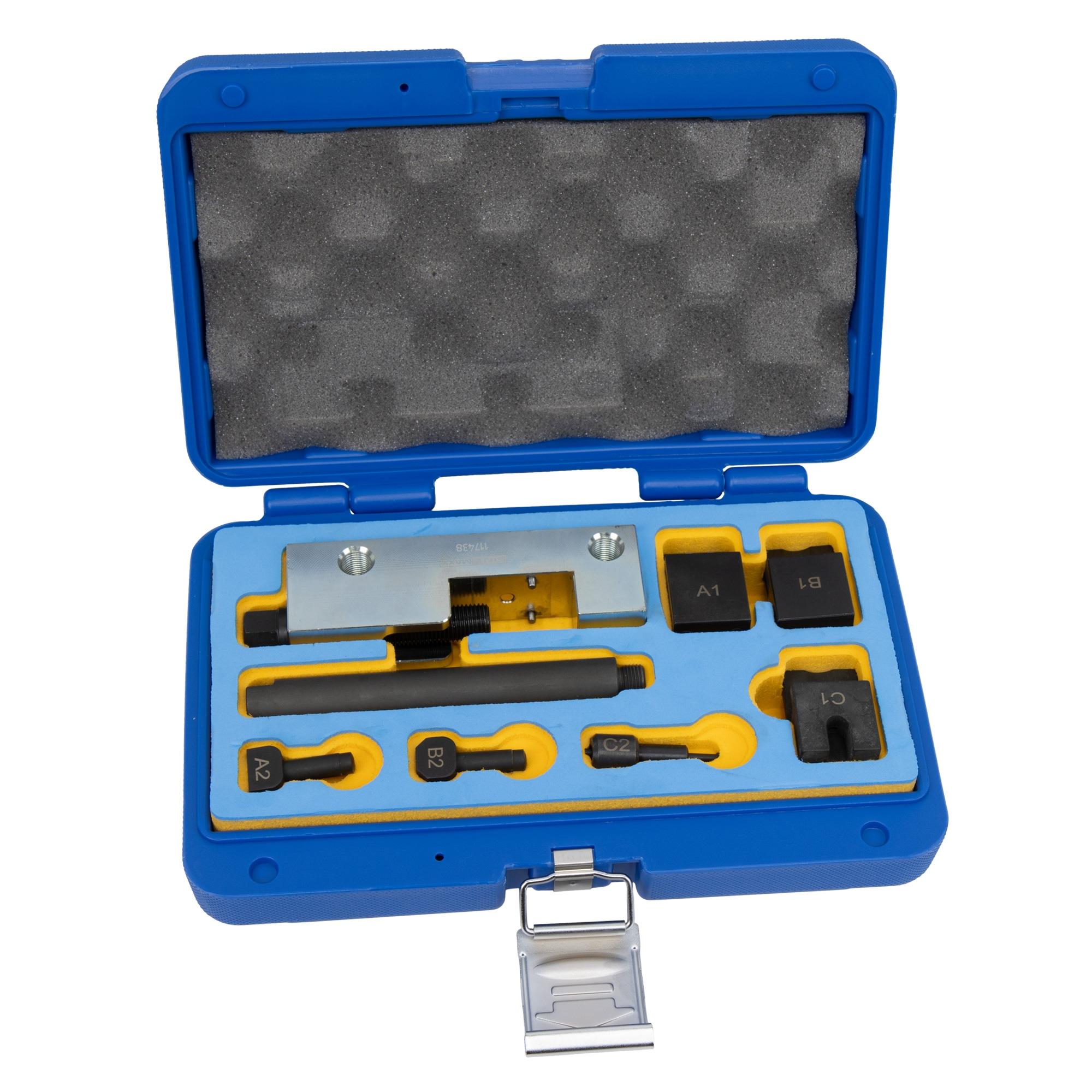 Spezialwerkzeug zum Trennen und Vernieten der Motor-Steuerkette an Mercedes-Benz-Motoren der Baureihen M133, M152, M157, M260, M264, M270, M274, M276, M278 mit INA-Steuerkette.