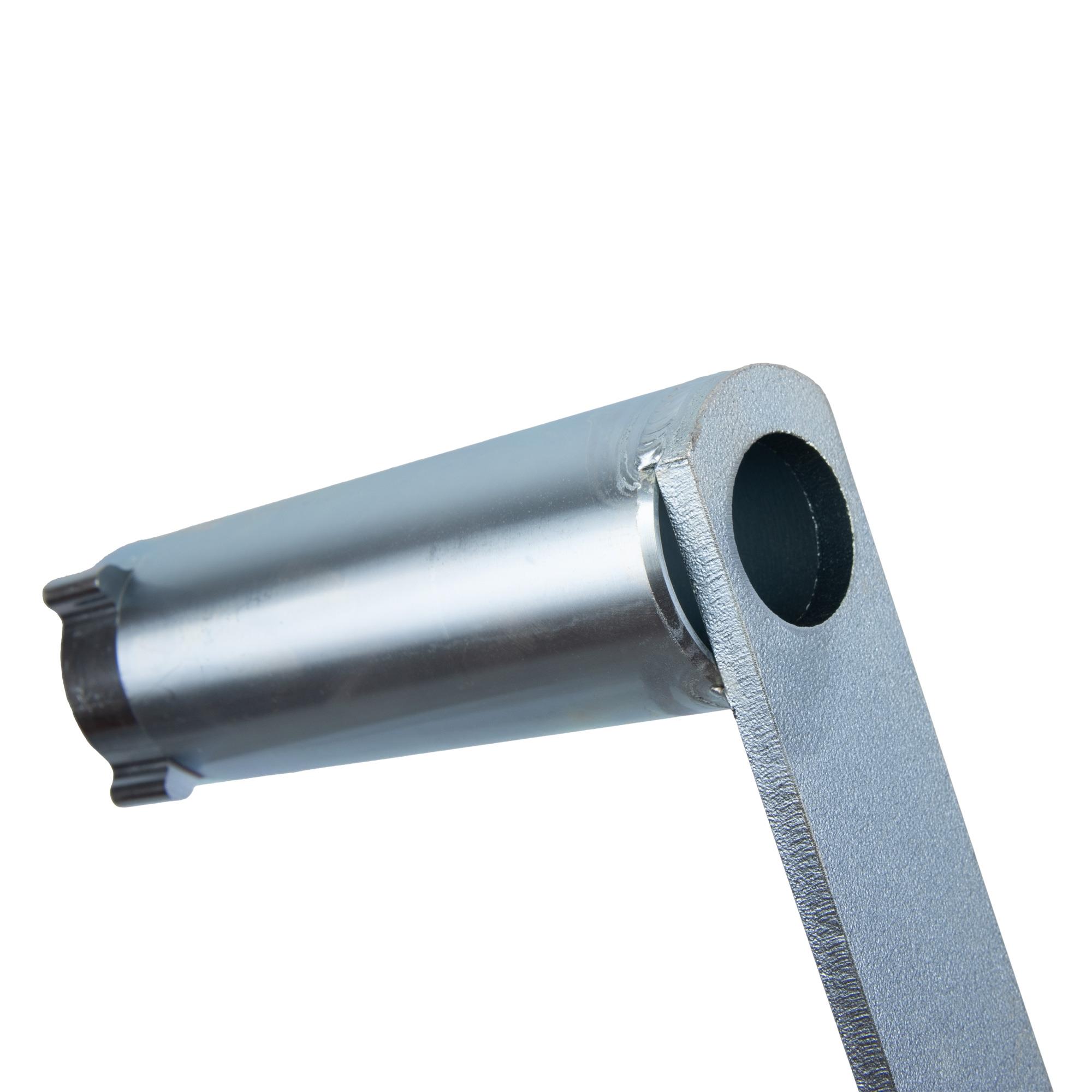 Dieser Gegenhalter fixiert die Zentrifuge auf der Ausgleichswelle um die Befestigungsschrauben Lösen und Festziehen zu können.