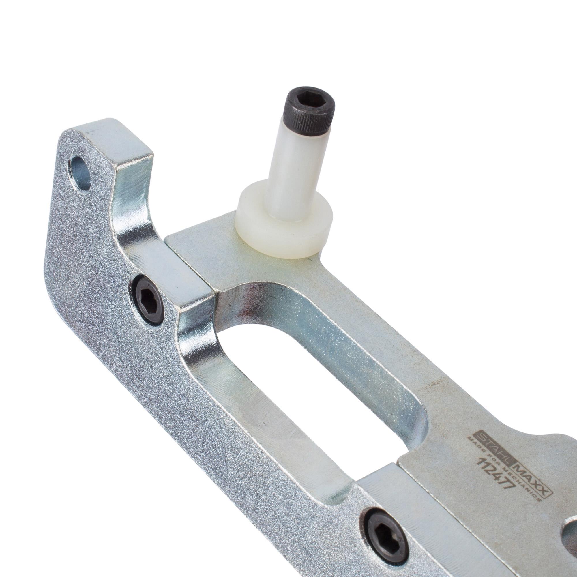 Spezialwerkzeug zum Halten und Durchziehen der Steuerkette für verschiedene Mercedes Fahrzeuge. Die Steuerkette sitzt bei diesen Modellen an der Stirnwand – um ein Durchziehen ohne Überspringen der Kette durchzuführen, ist dieses Werkzeug zusammen mit Art.-Nr. 112478 zwingend erforderlich.
