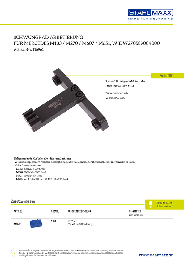Weiterführende Links zu "Schwungrad Arretierung für Mercedes M133 M270 OM607 M651"