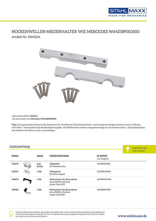 Vergleichsnummern zu "Nockenwellen-Niederhalter, für Mercedes, wie OEM W642589003100"
