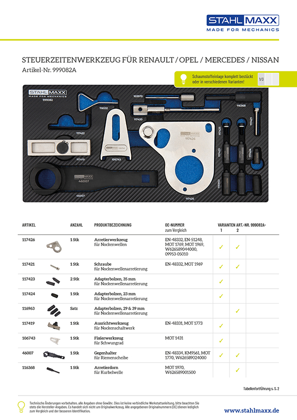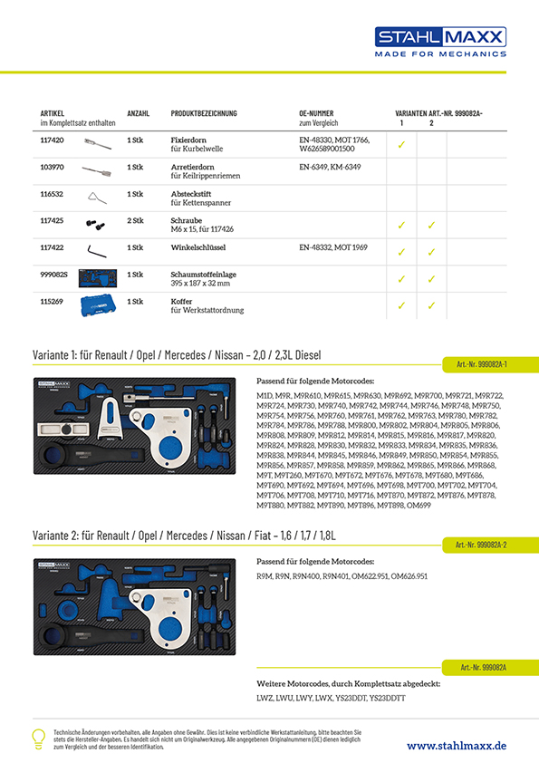 Weiterführende Links zu "Steuerzeitenwerkzeugsatz, für Renault, Opel, Mercedes, Nissan, 2.0L, 2.3L Diesel, M9R, M9T, OM699"