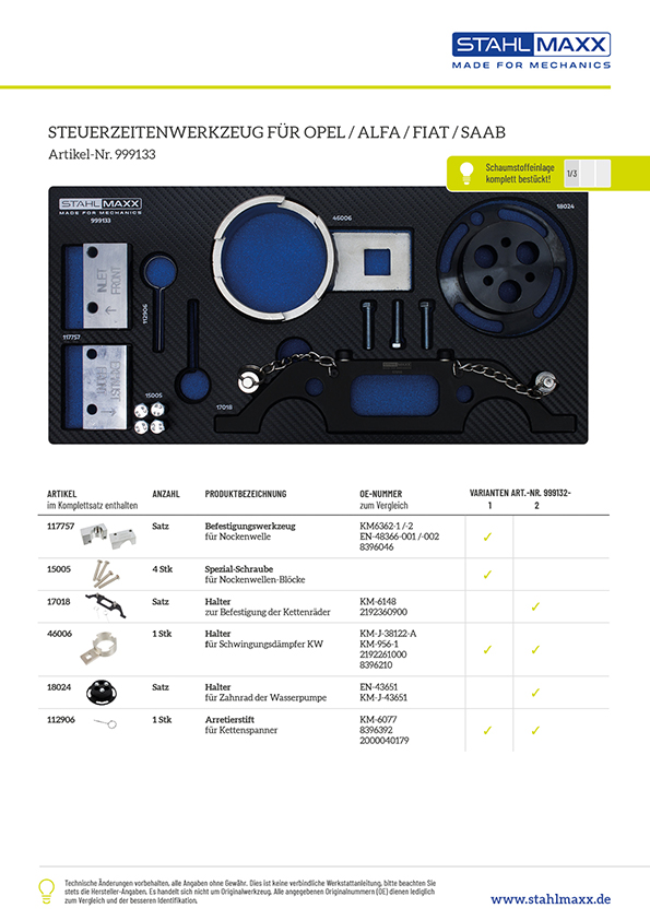 Vergleichsnummern zu "Steuerketten und Wasserpumpe Wechsel Werkzeug Satz für Opel 2,2 16V Benziner"