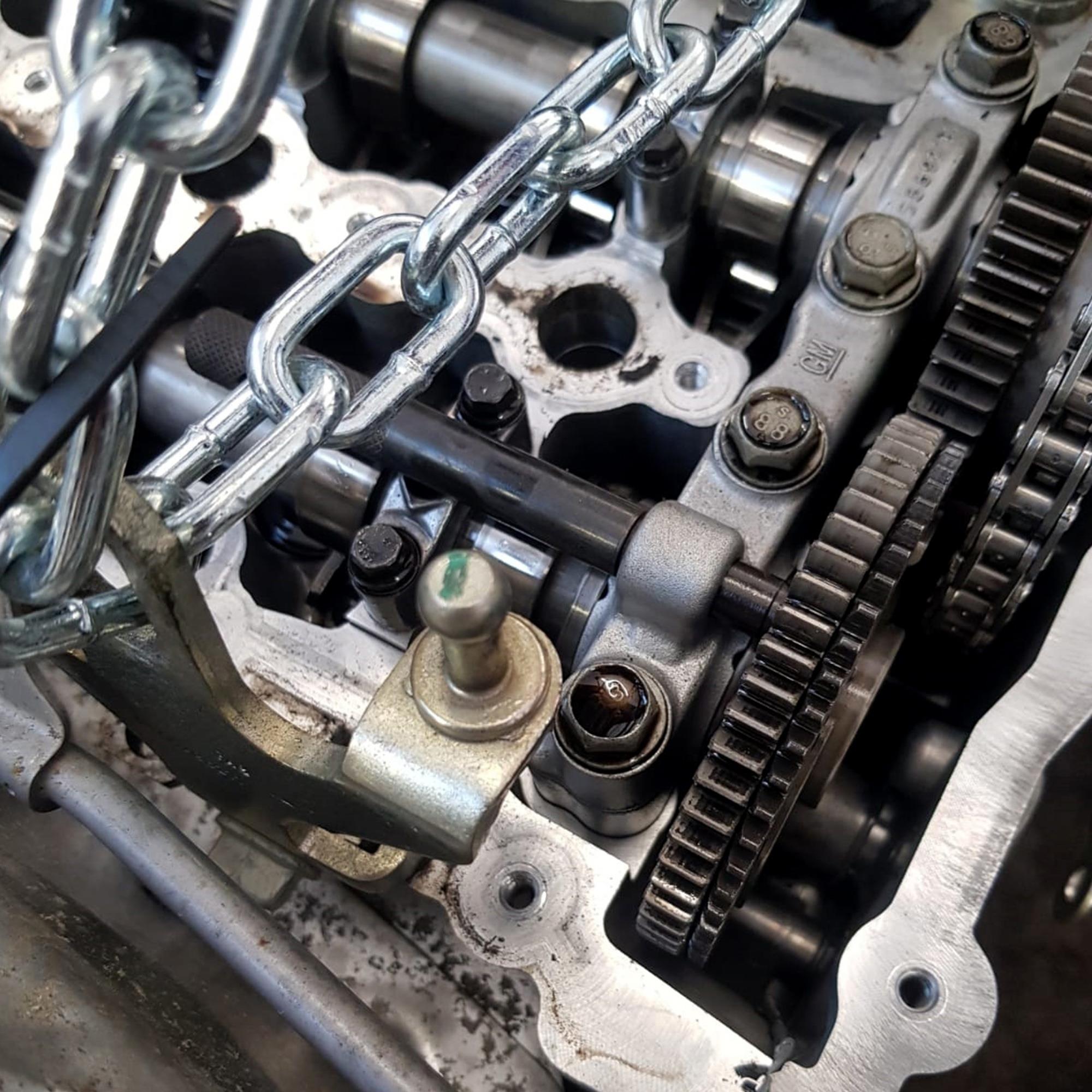 Die Nockenwellen werden bei dieser Generation über die Hauptsteuerkette und miteinander über Zahnräder angetrieben.