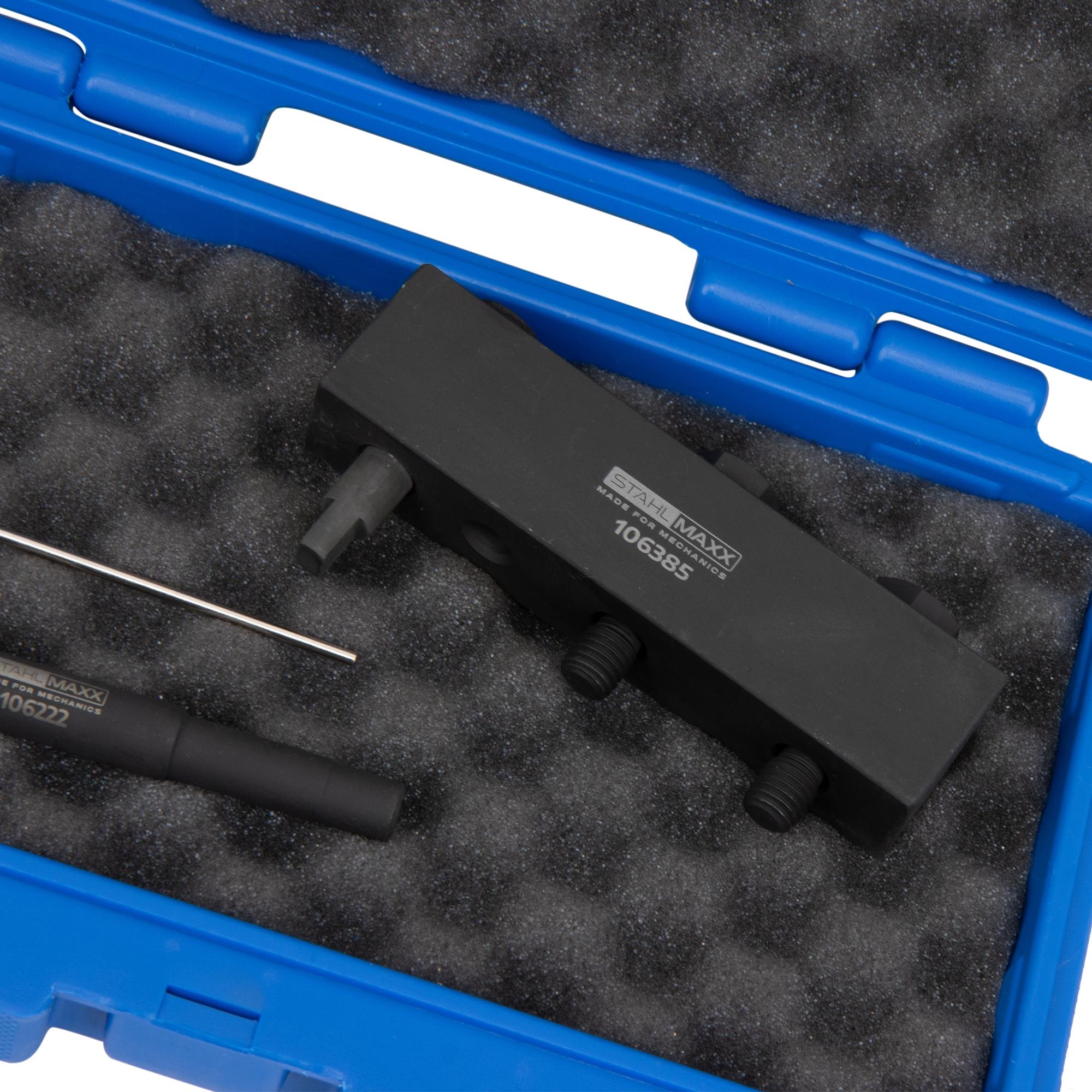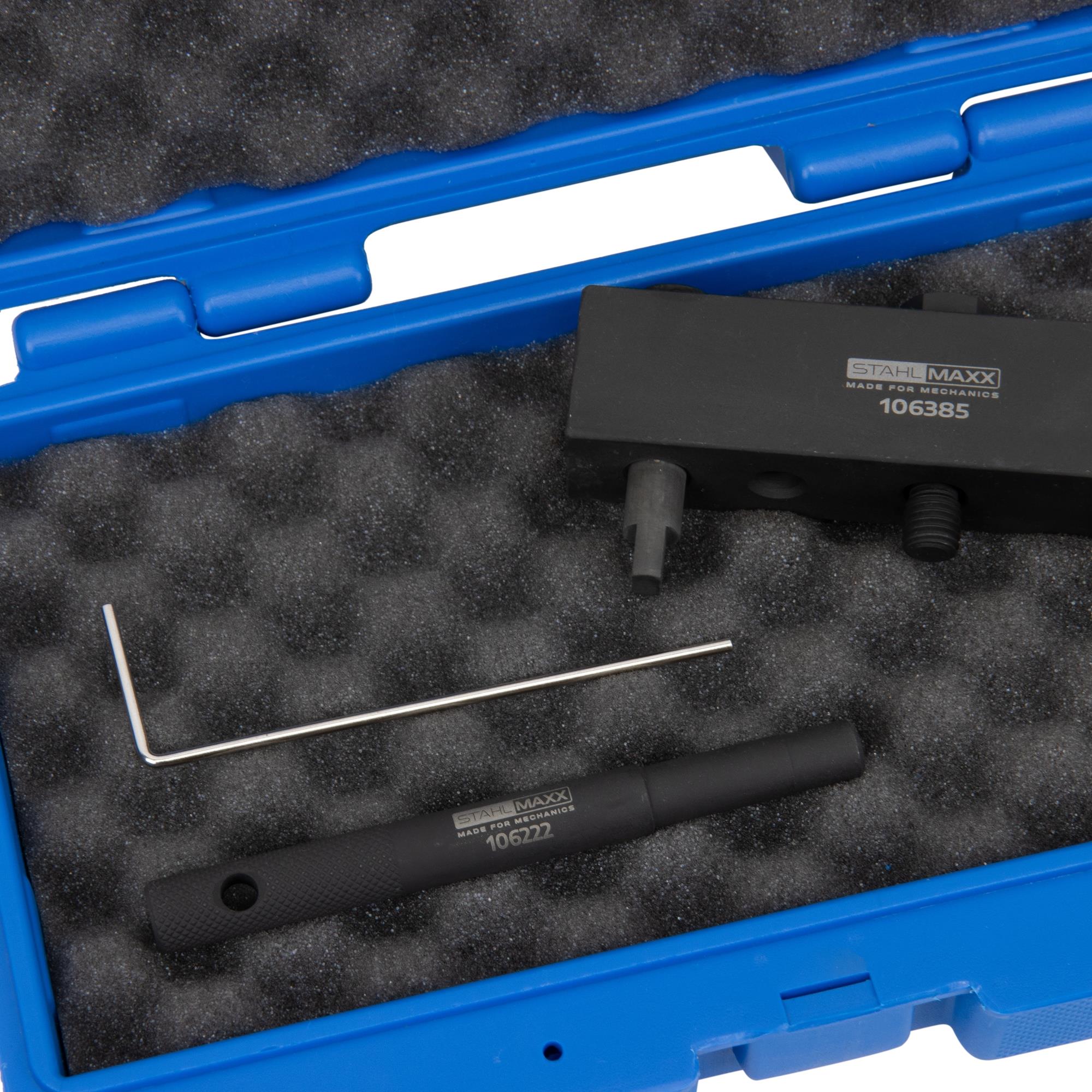 Steuerzeitenwerkzeug-Satz zum Arretieren der Nockenwelle bei Reparaturen am Motor.
