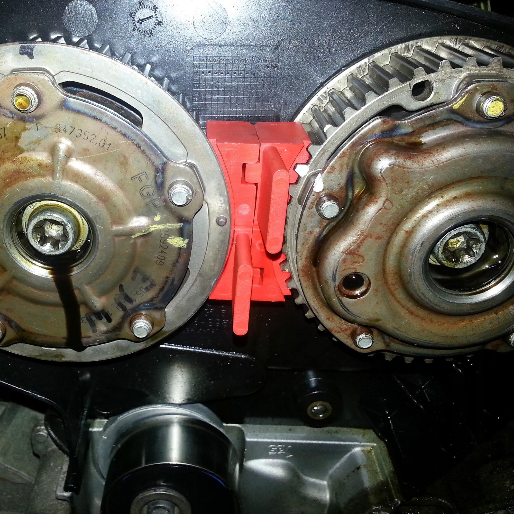 Einfach zwischen die Nockenwellenräder gesteckt und fertig. Einfacher geht es nicht.