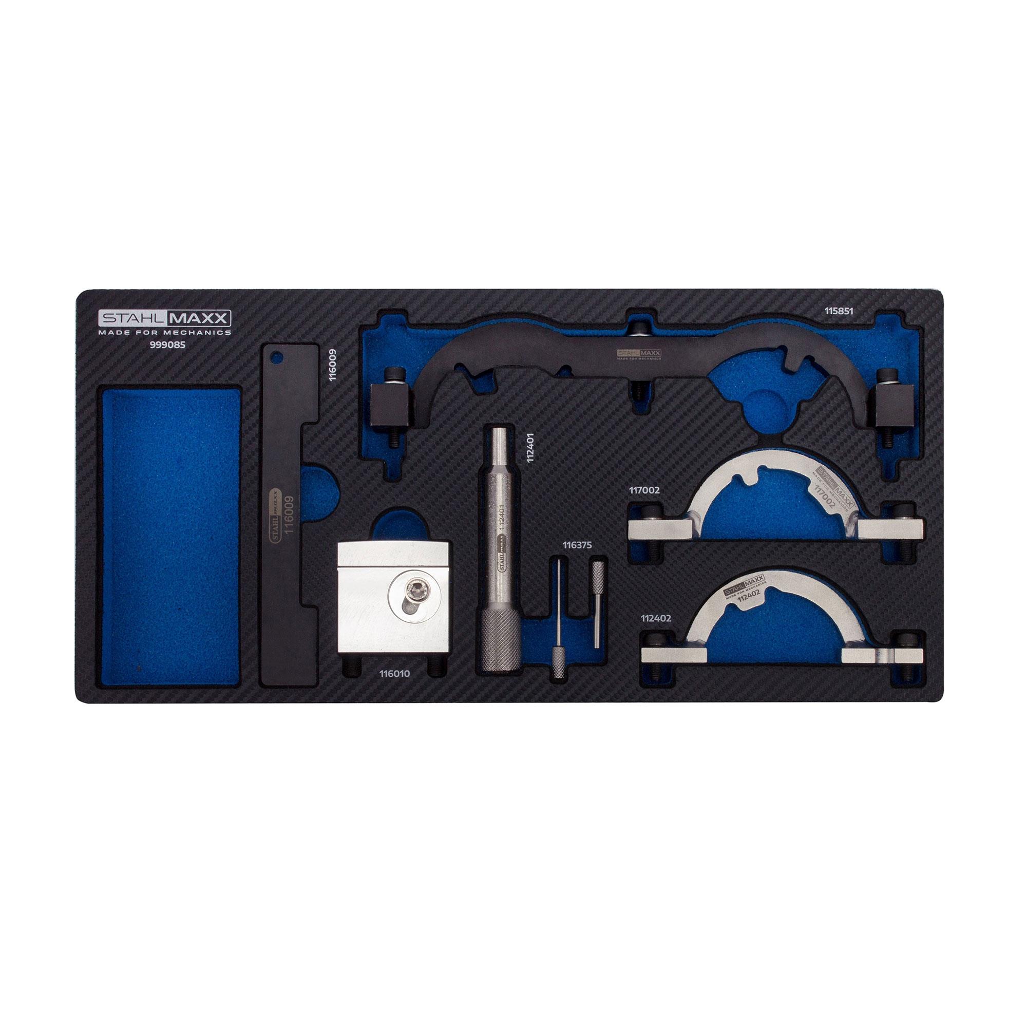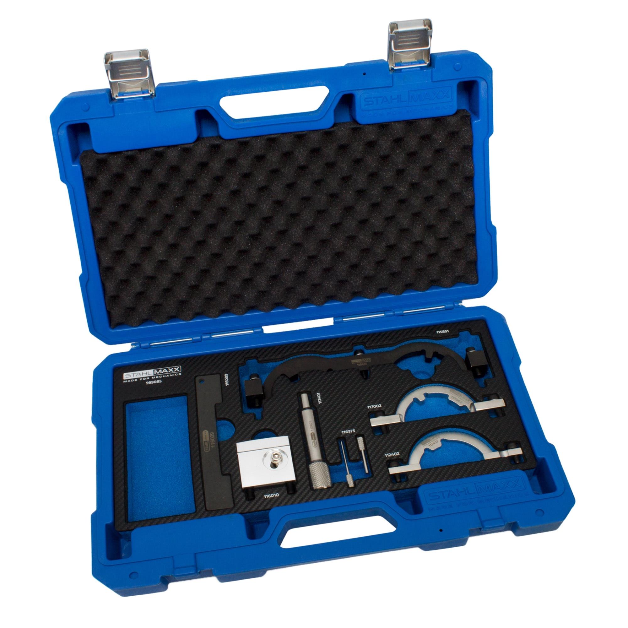 Spezialwerkzeug für das Arbeiten im Bereich der Motorsteuerung bei den angegebenen Opel-Motoren. Inklusive robustem Koffer. Das professionelle Spezialwerkzeug wird mit einer Schaumstoffeinlage in Carbon-Optik geliefert. Die Beschichtung der Schaumstoffeinlage ist abwischbar und daher besonders widerstandsfähig. Ihre Maße sind zudem an gängige Werkstattwagen angepasst. Das Werkzeugset beinhaltet Werkzeuge zur Nockenwellenarretierung, Kurbelwellenarretierung etc.