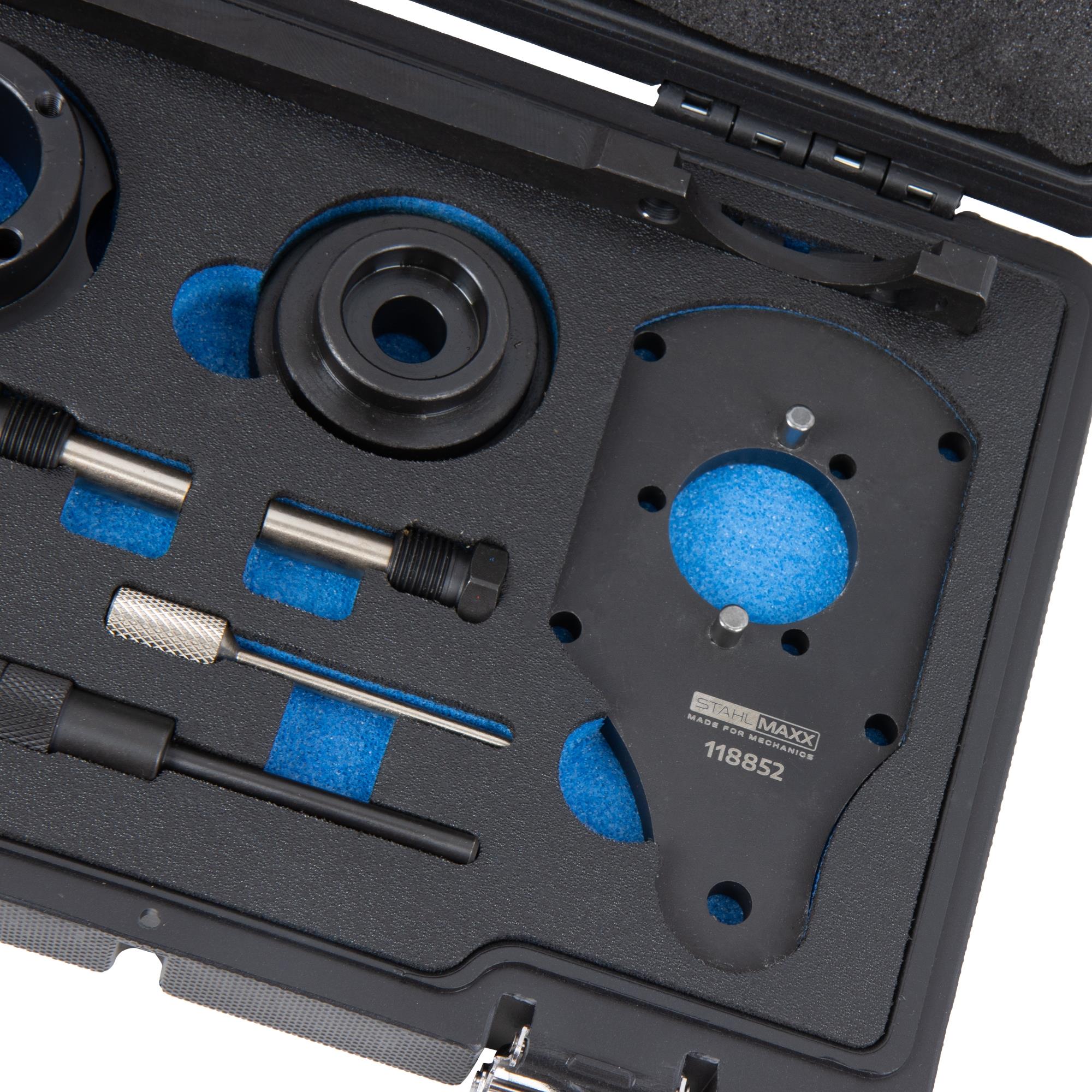 Dieser Motoreinstellwerkzeug Satz enthält alle Werkzeuge, die für die Festlegung, Justierung und Überprüfung der Motoreinstellung an 1,3-l-CDTI-Dieselmotoren von Vauxhall/Opel benötigt werden.