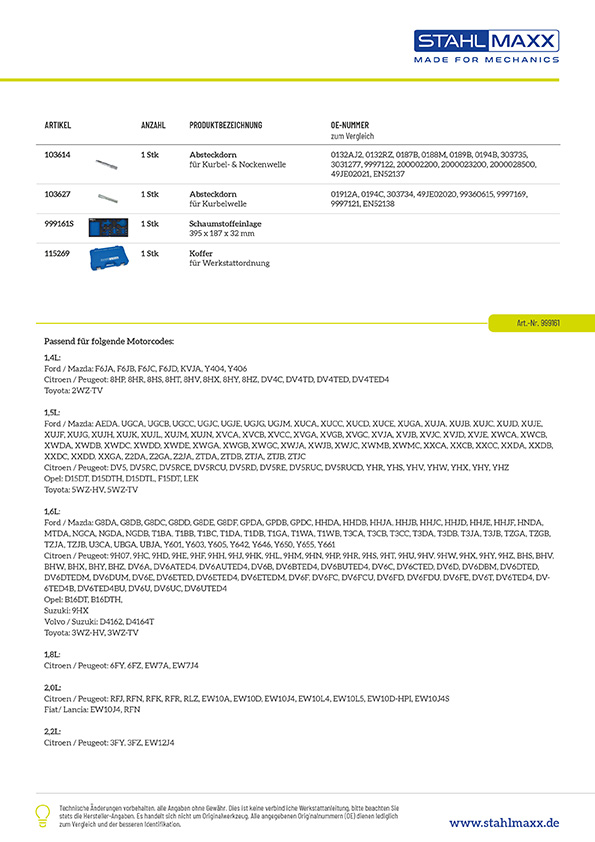 Weiterführende Links zu "Steuerzeitenwerkzeug für PSA, Ford, Opel, Volvo – 1.4, 1.5, 1.6, 1.8, 2.0, 2.2 L Benzin & Diesel"