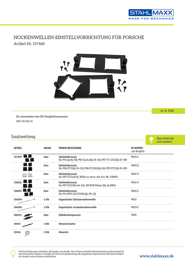 Vergleichsnummern zu "Haltefedernsatz für Porsche 997 GT3 ab 2010, wie 9661/3"