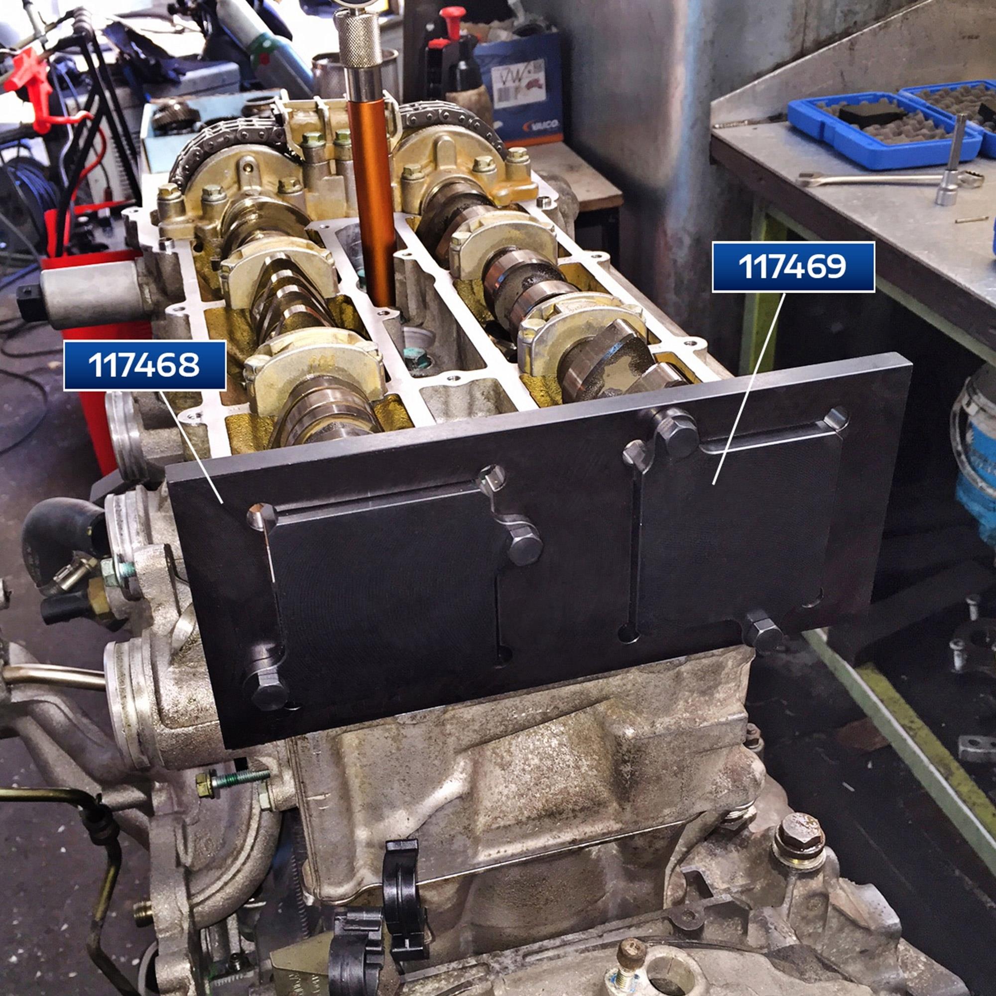 Spezialwerkzeug-Satz zum Einstellen der Steuerzeiten. Fixiert die Nockenwellen zum Einstellen von... mehr