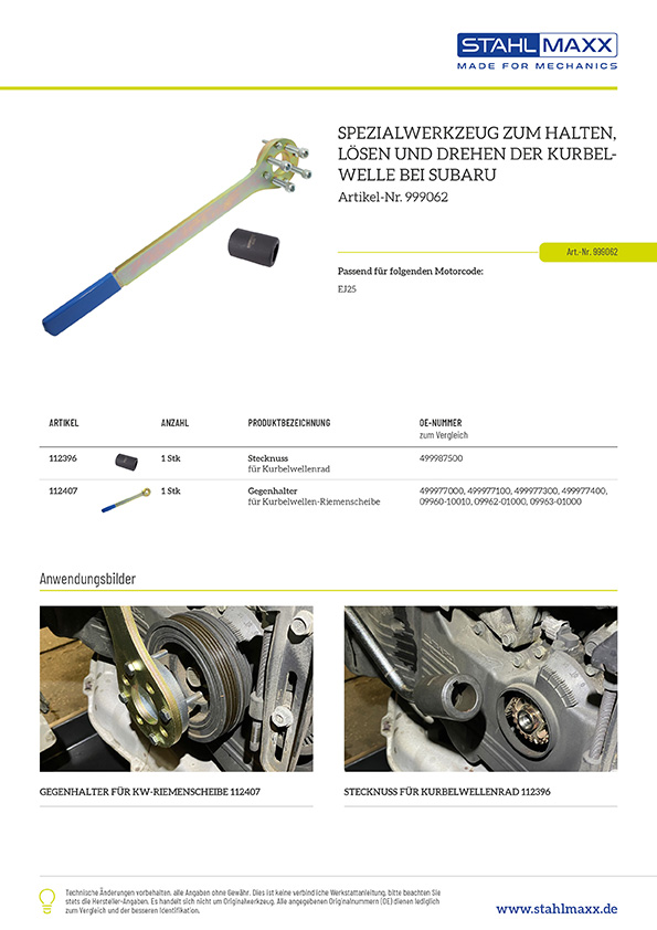 Weiterführende Links zu "Spezialwerkzeug zum Halten, Lösen, Drehen der Kurbelwelle, für Subaru"