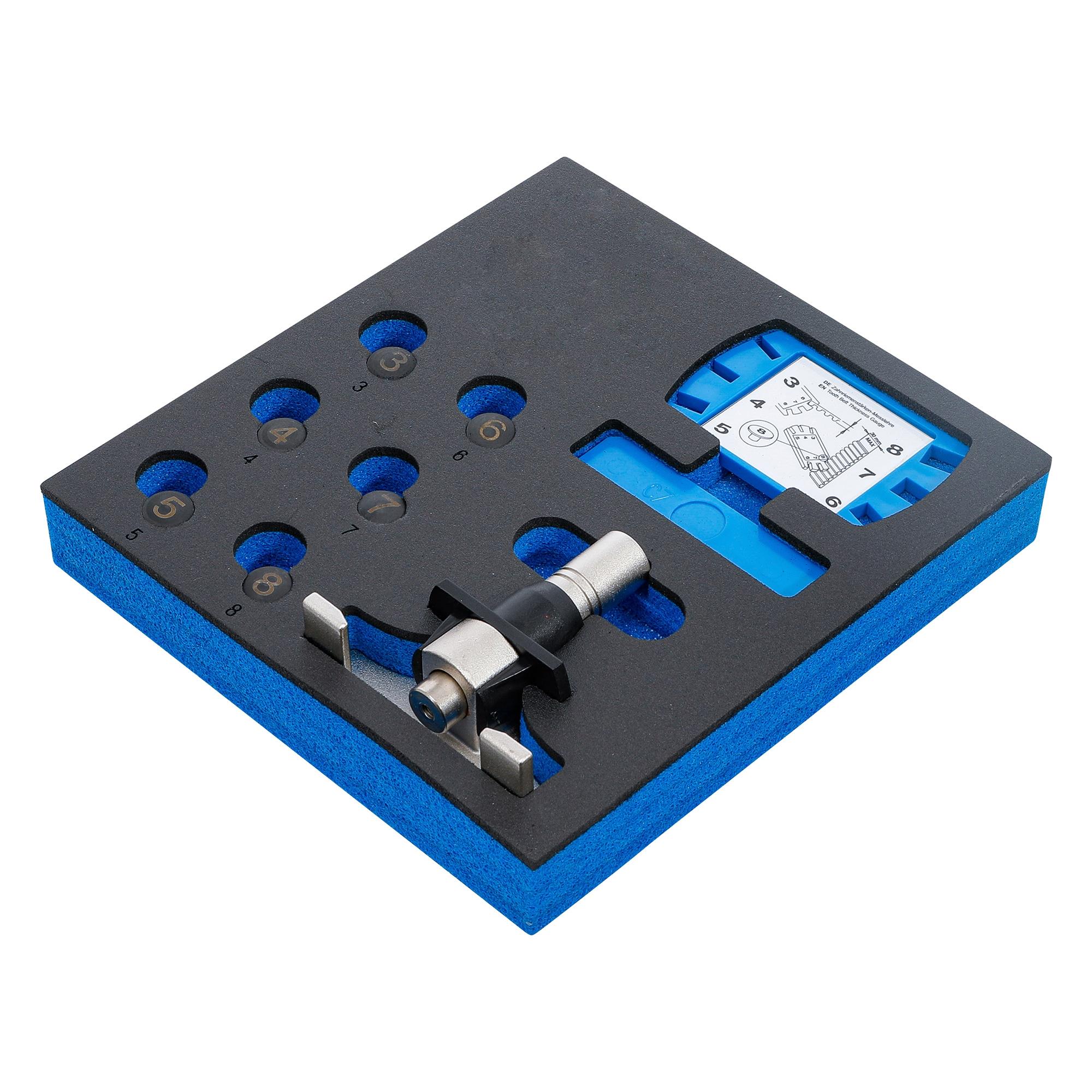 Dem Sortiment liegt eine Kalibrierplatte bei. Es wird empfohlen nach einigen Anwendungen das Werkzeug noch auf seine Genauigkeit und Kalibrierung zu überprüfen.