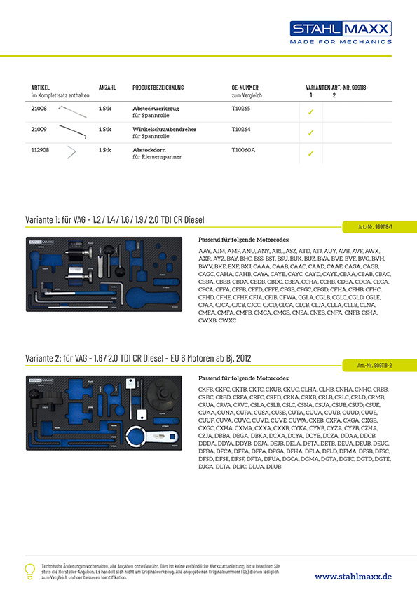 Originalnummern dienen nur zu Vergleichszwecken, es handelt sich nicht um Original-Werkzeug!
