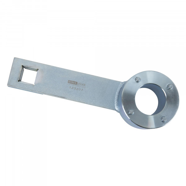 Dieser Gegenhalter für den Schwingungsdämpfer, wird zur De- und Montage der Zentralschraube an der Gen.3 TFSI Motorengeneration EA888 benötigt. Leider ist es nach Reperaturleitfaden nicht eindeutig zu bestimmen, welche Variante der Riemenscheibe verbaut ist.