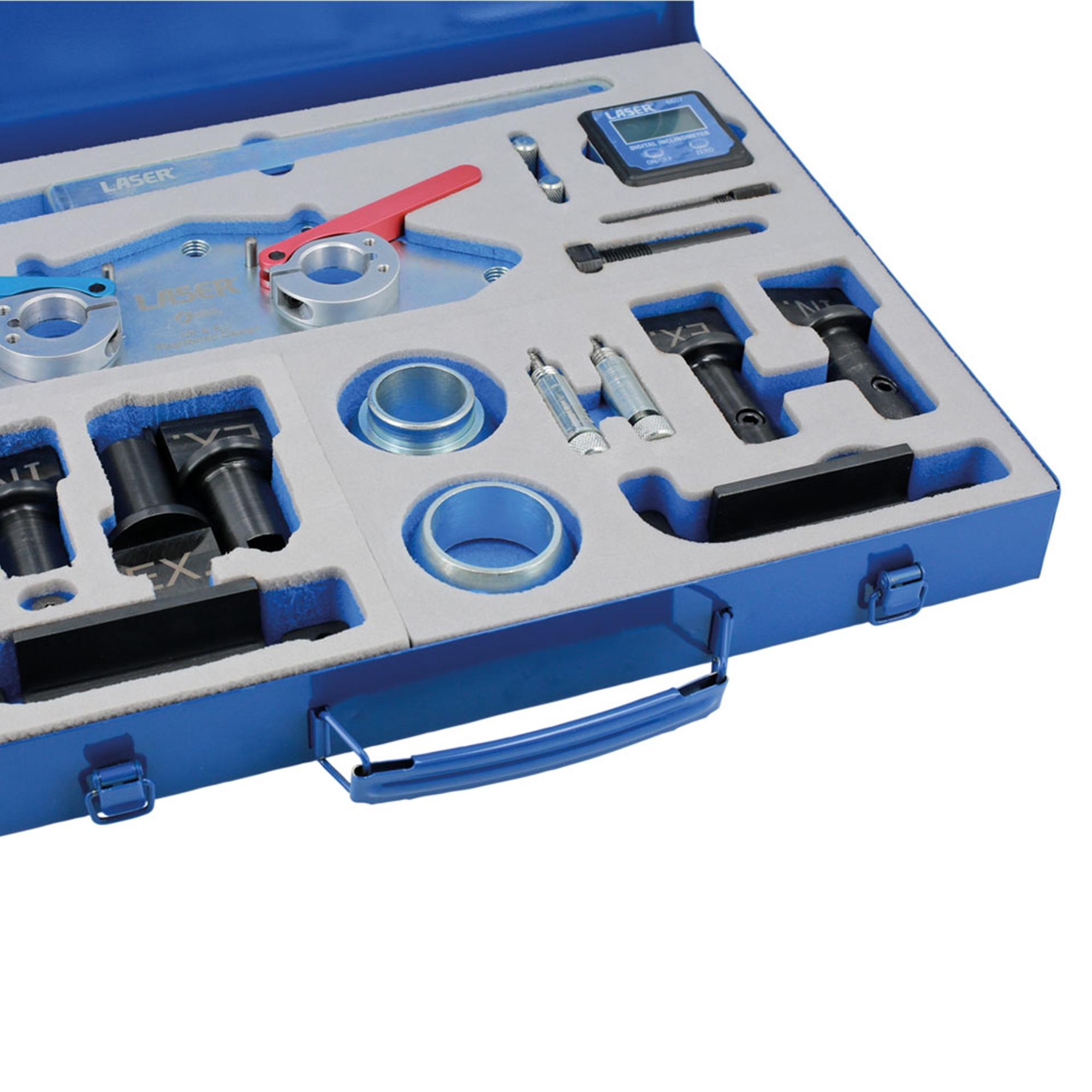 Mit diesem professionellen und präzise gefertigten Spezialwerkzeug ist es möglich die Grundeinstellung mit sensiblen Neigungsmessern vorzunehmen. Es wird keine weitere, teure und digitale Anbindung benötigt. Durch diese innovative Lösung ist eine Arbeitsweise nach Reparaturleitfaden problemlos möglich.