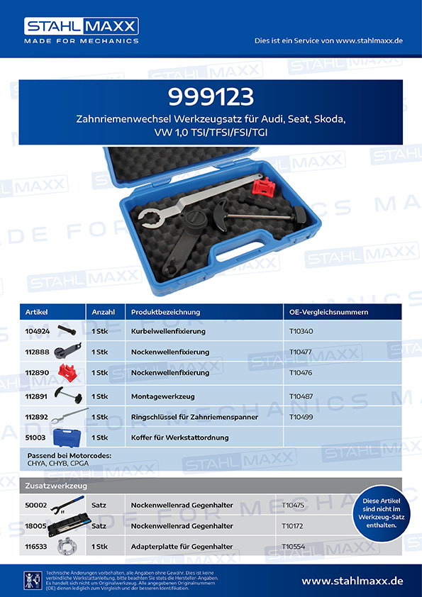 alle 1.0L, 1.2L, 1.4L, 1.6L TSI, TFSI, EA211 Motoren mit mindestens einen Nockenwellenversteller -