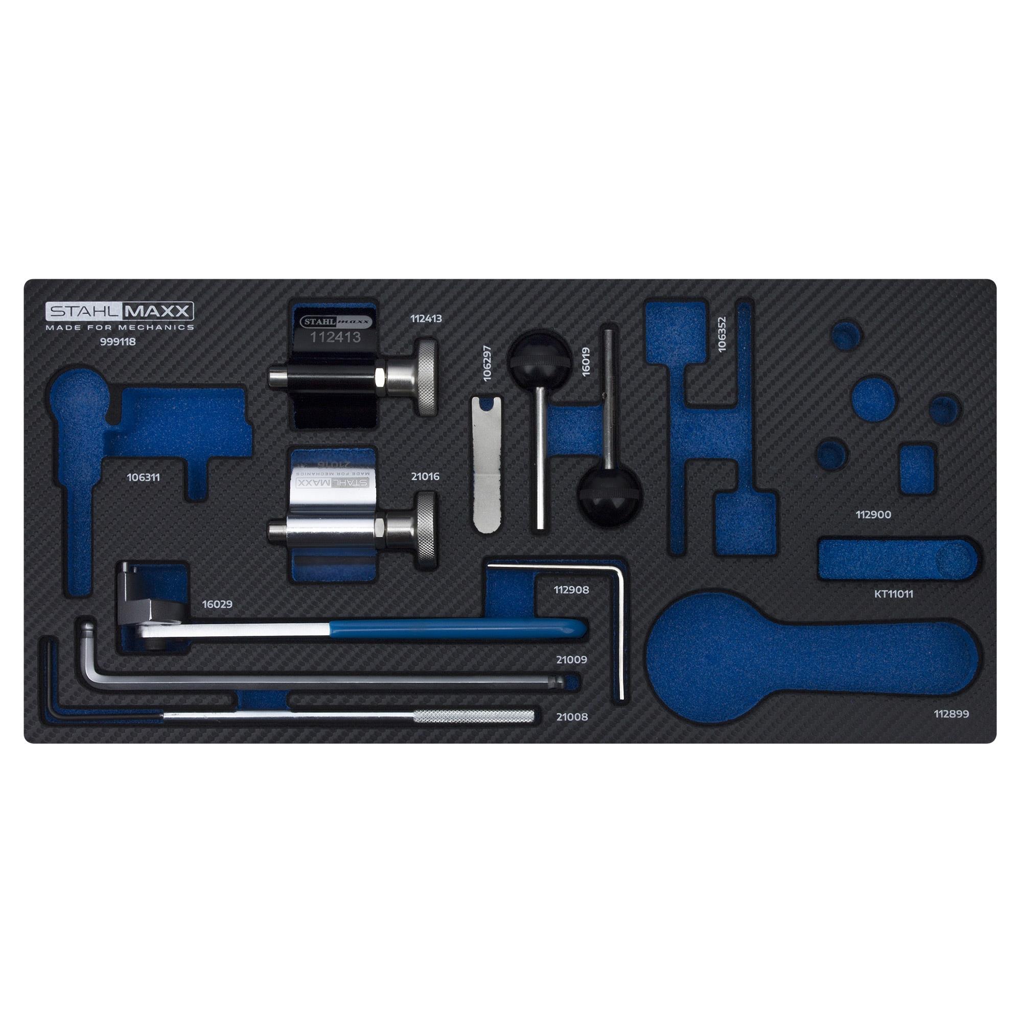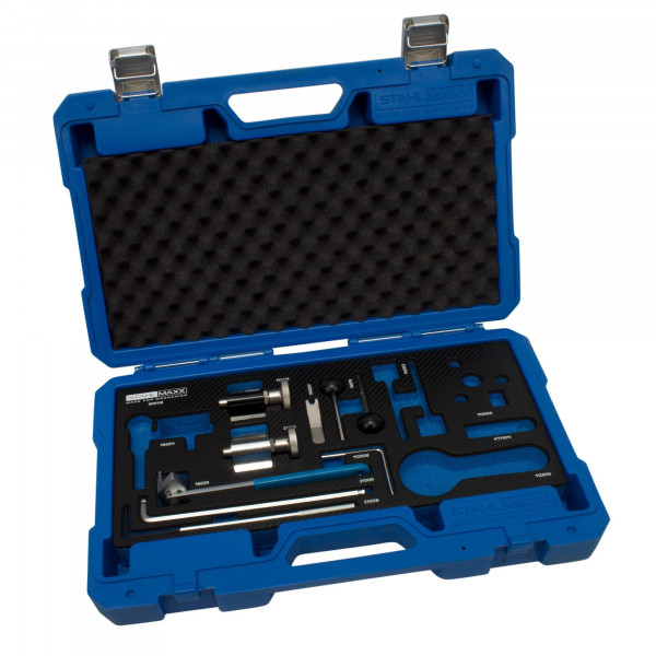 Spezialwerkzeugsatz für die Motoreninstandsetzung / Motorsteuerung bei den unten aufgeführten Motoren für Audi, VW, Skoda und Seat. Dieser beinhaltet Werkzeug zum Arretieren der Nockenwelle, Fixieren der Kurbelwelle, Vorspannen der Spannrolle etc. Zum Schutz der Werkzeuge dient der robuste Koffer und die passgenaue Schaumstoffeinlage, welche zudem in gängige Werkstattwagen passt. Die Schaumstoffeinlage ist abwischbar und durch ihre Beschichtung besonders stabil.
