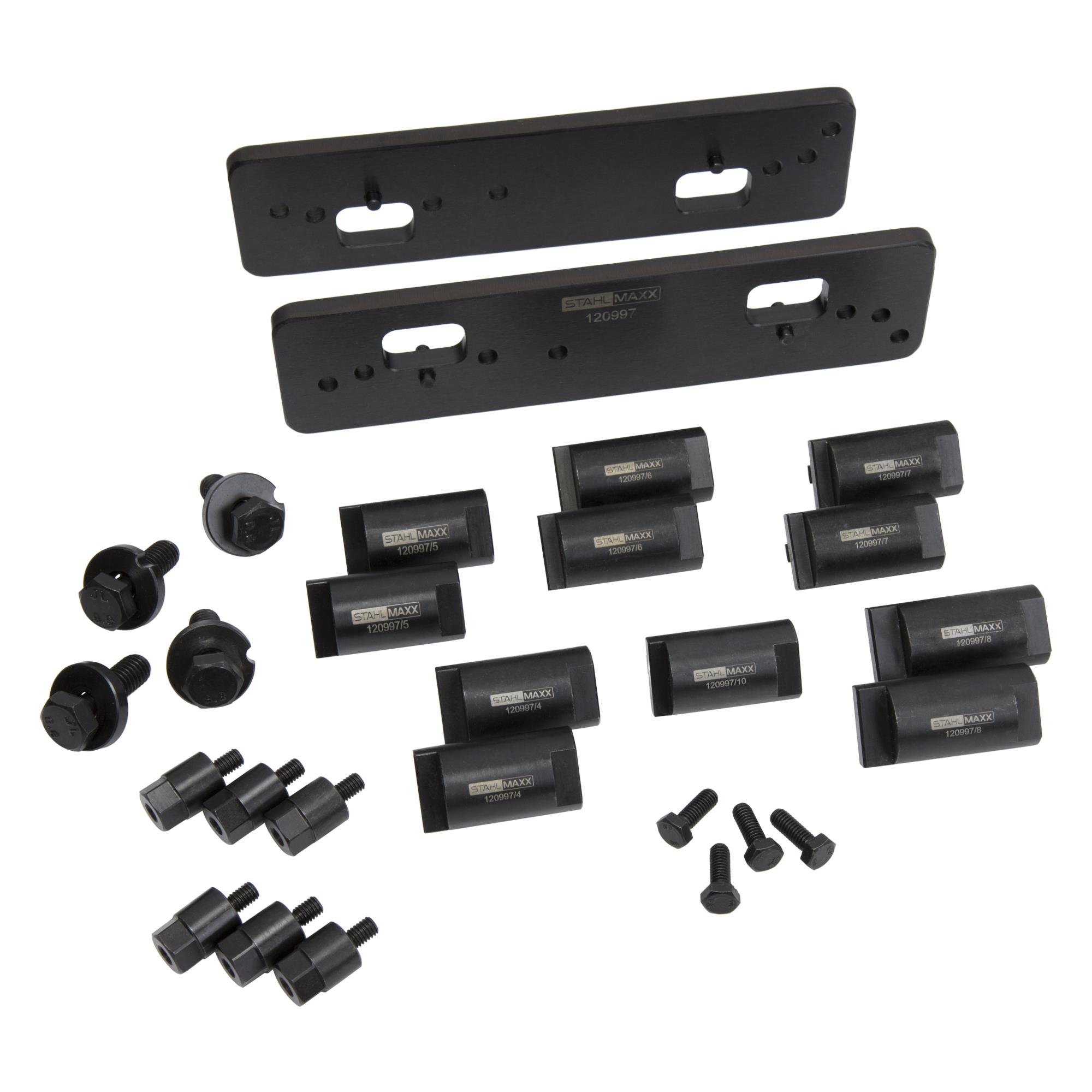 Nockenwelleneinstellwerkzeug, mit verschiedenen Adaptern, zur Fixierung der Nockenwelle bei der Motorreparatur.