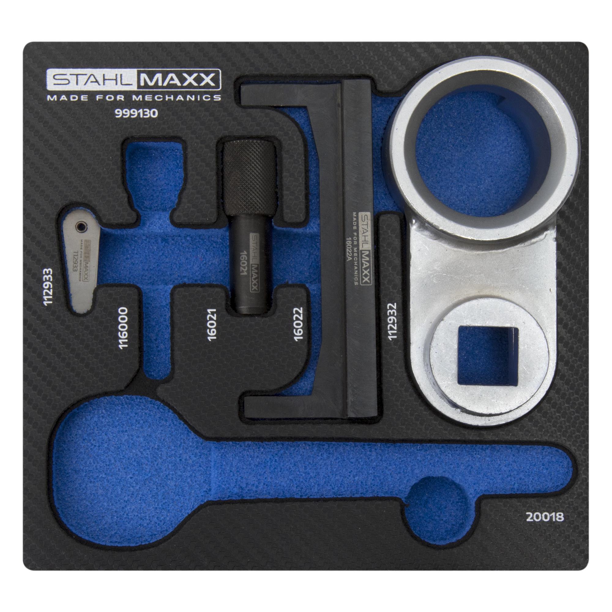 Dieses professionelle Werkzeug verwenden Sie für Arbeiten im Bereich der Motorensteuerung / Motoreninstandsetzung bei den unten aufgeführten Motoren von VW. Das Spezialwerkzeug wird durch einen stabilen Koffer geschützt und mit einer passgenauen Schaumstoffeinlage in Carbon-Optik geliefert, die für gängige Werkstattwagen geeignet ist. Der Werkzeugsatz dient zum Arretieren der Nockenwelle, Fixieren der Kurbelwelle, Vorspannen der Spannrolle etc.