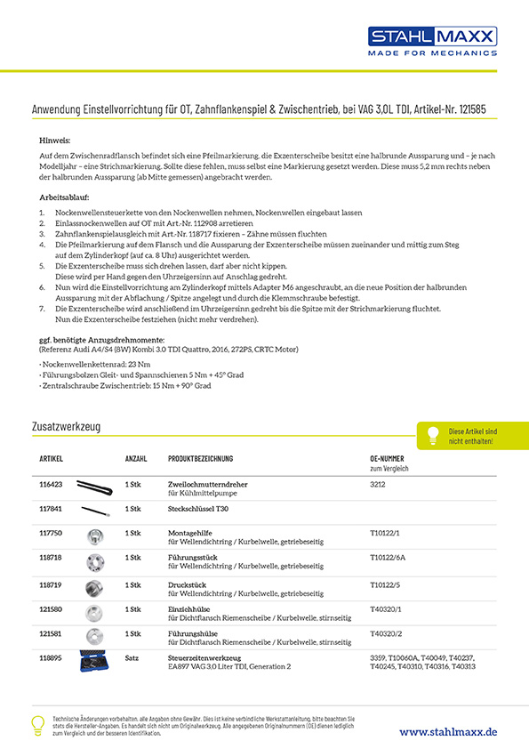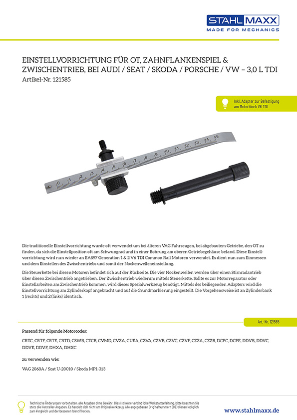 Weiterführende Links zu "Einstellvorrichtung für OT, Zahnflankenspiel und Zwischentrieb 3,0TDI, wie 2068A inkl. Adapter"