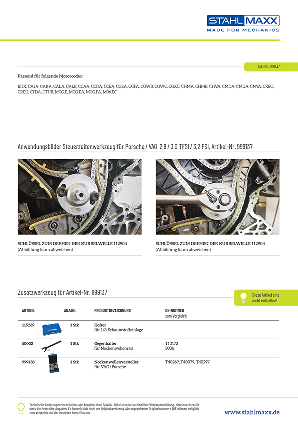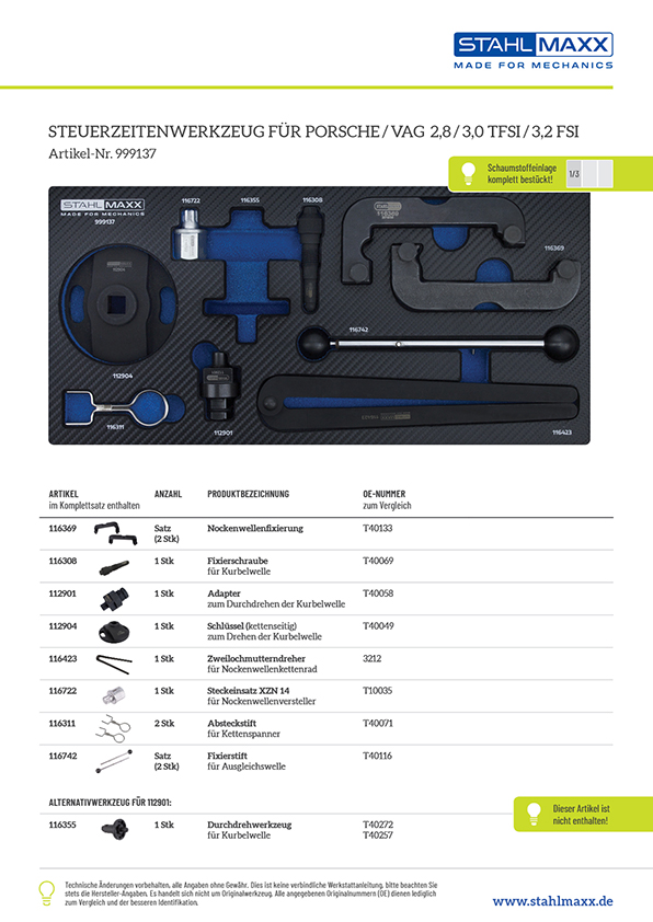 Vergleichsnummern zu "Steuerzeiten Werkzeug Satz für Audi A6 S6 3,0 TFSi 3,2 FSi"