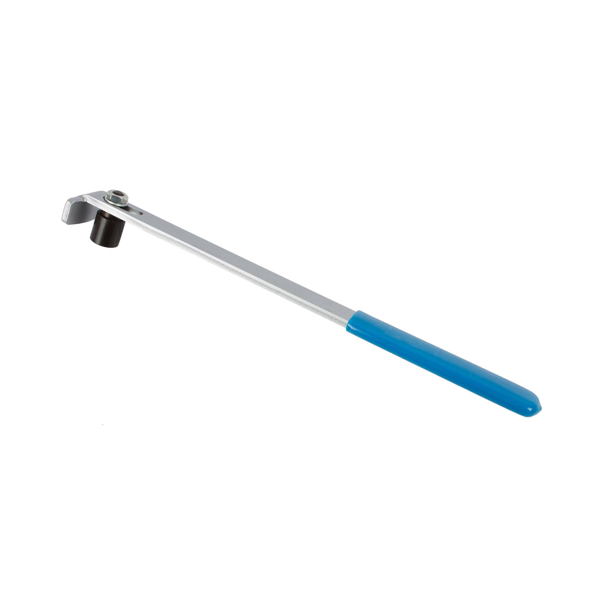 Dieser Gegenhalteschlüssel für Riemenscheiben ist verstellbar und eignet sich daher bestens zum Lösen der Befestigungsschrauben verschiedenster Rippenriemen-Räder.