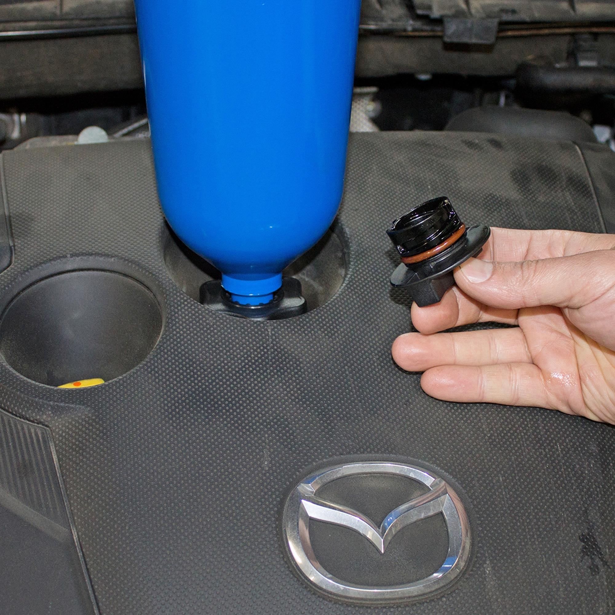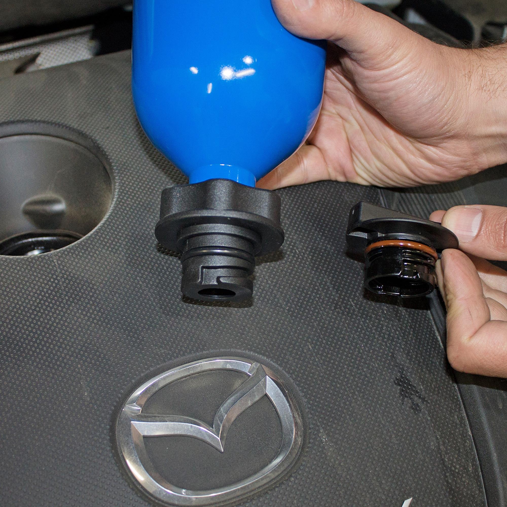 Spezieller Öl-Einfülladapter zum einfachen und sauberen Öl-Befüllen bei Motoren von Volvo, Ford, Opel, Mazda uvm.