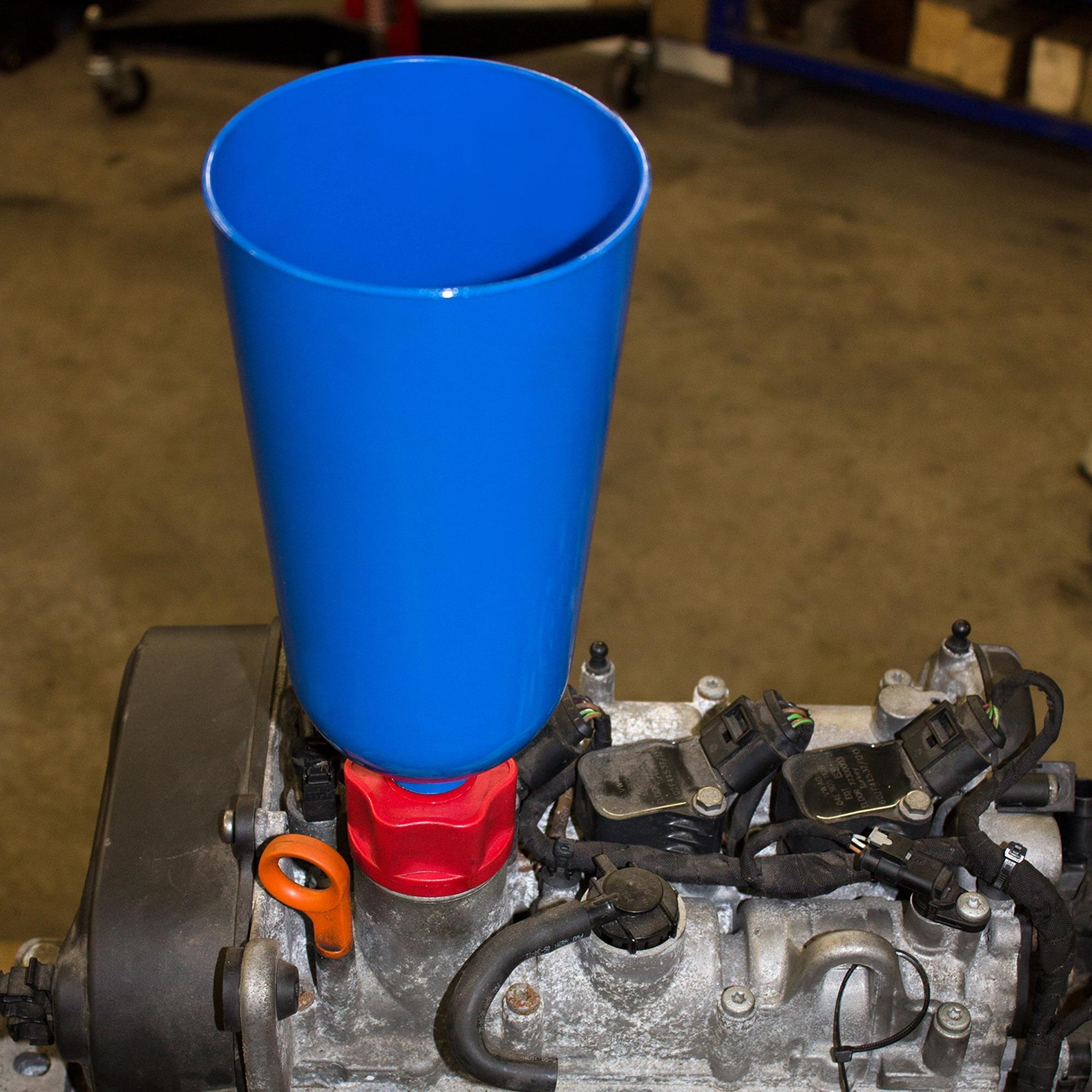 Dieser Einfülltrichter eignet sich für ein schnelles und sauberes Befüllen des Motors mit Öl, ganz ohne Verschütten. Der Trichter, mit einem Fassungsvermögen von 2 Litern, kann dank des mitgelieferten Bajonett-Adapters bei vielen Fahrzeugmodellen verwendet werden.