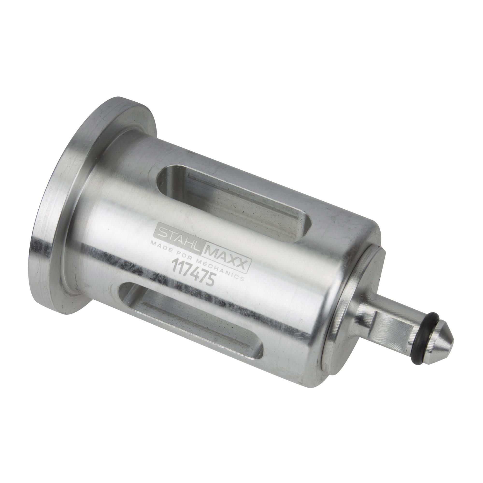 Spezieller Nachrüst-Adapter zur Öldruckprüfung bei BMW B48 / N20 / N52 / N53 / N54 / N55 / S55 Motoren, die eine Erweiterung des Spezialwerkzeuges wie BMW 119250 / Art.-Nr. 106597 benötigen um den Öldruck über das Ölfiltergehäuse prüfen zu können. Der Originaleinsatz aus dem Hauptartikel wird mittels eines Schraubendrehers entfernt und dieser eingesetzt. Der Ölfilter kann und sollte bei der Messung verbaut werden.