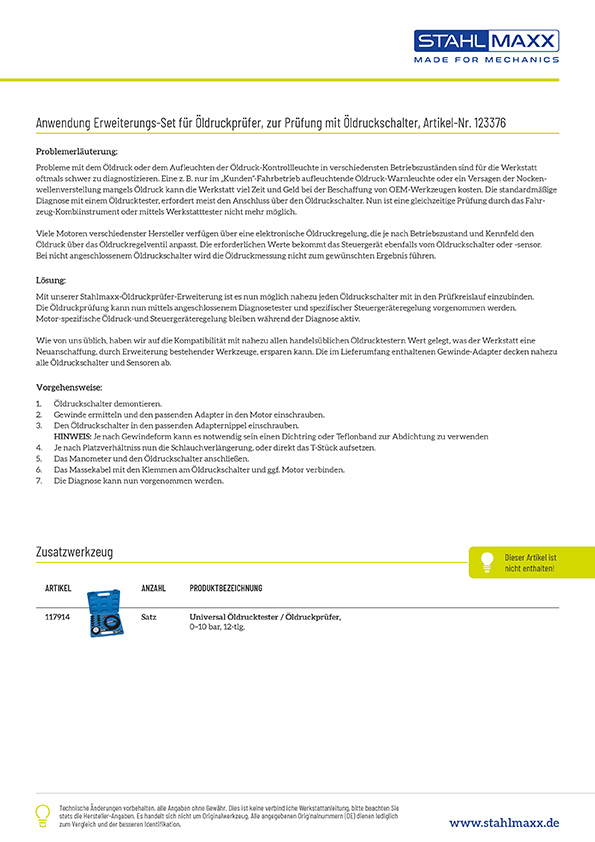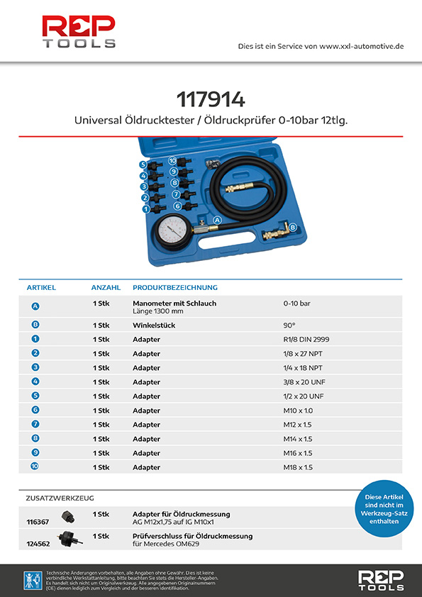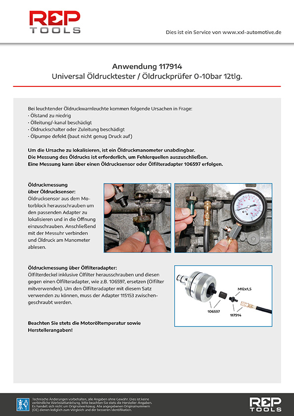Da ich das Öldruck Werkzeug in sage und schreibe 23 Stunden erhalten habe und es aber noch nicht geschafft habe es zu testen vergebe alleine für die super super schnelle Lieferung 5 Sterne. Da ich bereits mehrfach Werkzeug von XXL Automotive gekauft habe und stets zufrieden bin als Hobbyschrauber kann ich diese Firma nur weiterempfehlen... dies ist mein ganz persönlicher Eindruck...