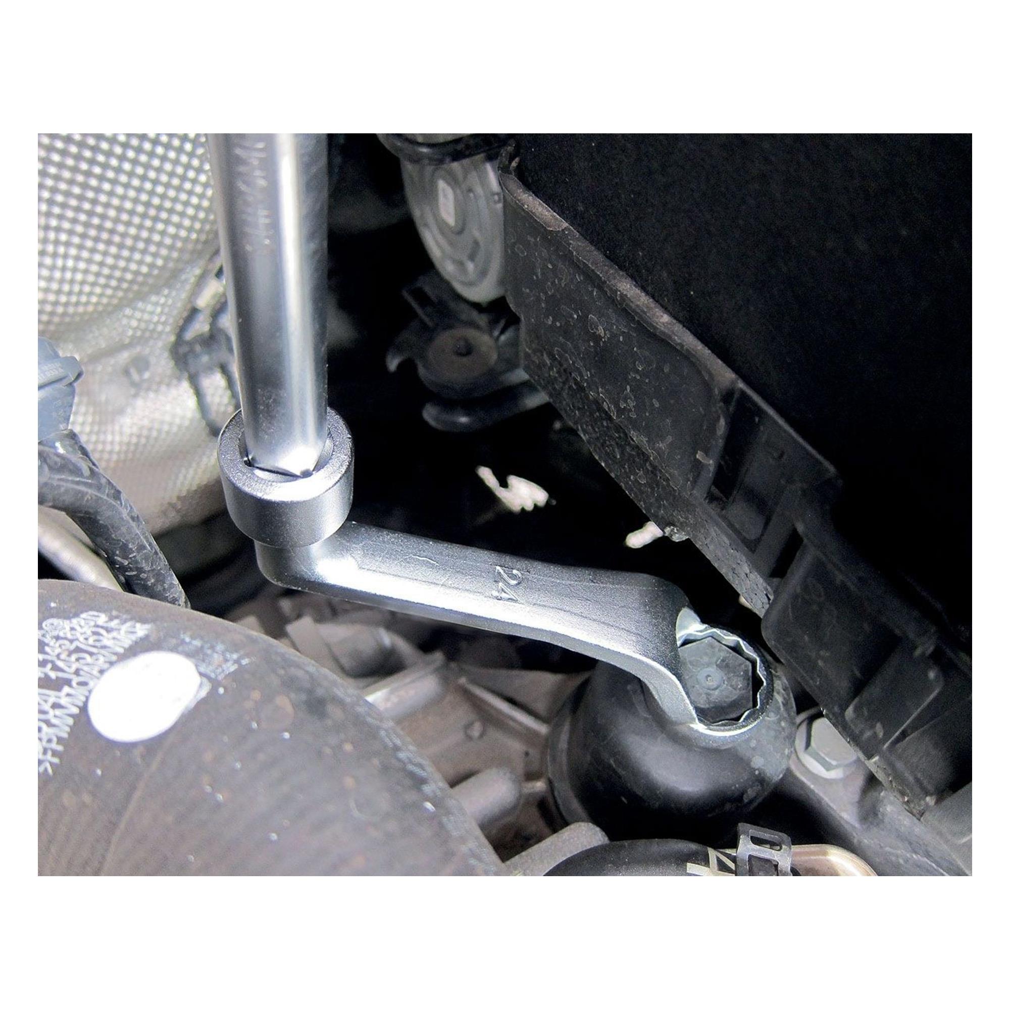 Mit diesem Spezialwerkzeug ist kein Ausbau der Batterie / des Batterieträgers nötig. Somit wird die Stromtrennung vom Bordnetz vermieden.