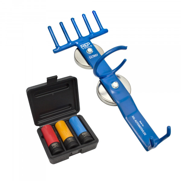 - universell einsetzbarer Magnethalter, gut geeignet zum Bestücken mit Radnüssen, Druckluftschlagschrauber und Drehmomentschlüssel