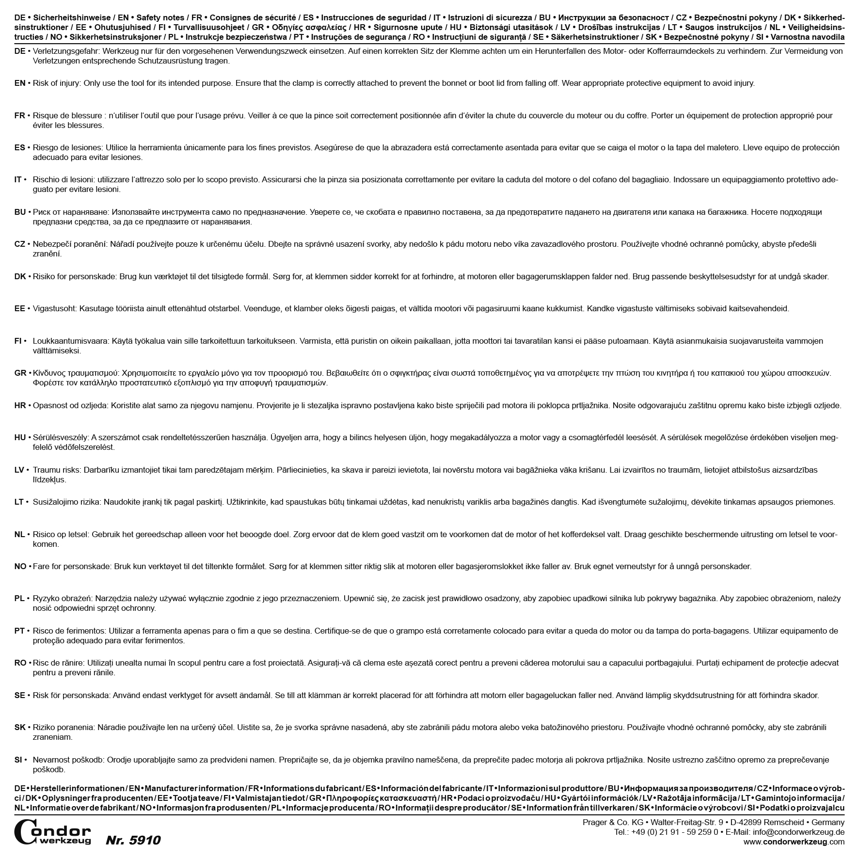 Verantwortliche Person für die EU: Prager & Co. KG |