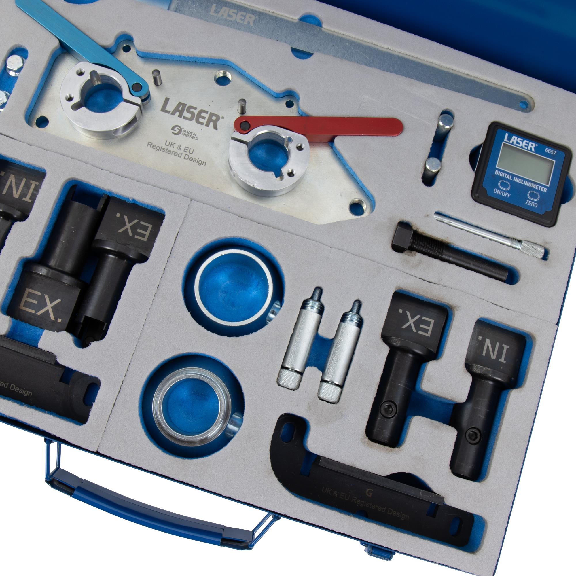 Die hier angebotene Variante beinhaltet das Grundwerkzeug (Art.-Nr. 123153) für 1.5L TSI,TFSI Motoren und die Erweiterung (Art.-Nr. 123214) für 1.0L, 1.2L, 1.4L, 1.6L TSI, TSFI Motoren der EA211 EVO2 Generation.
