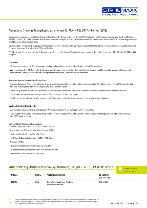 Weiterführende Links zu "Steuerzeitenwerkzeug Zahnriemen, für 1.2L LIH, Opel F12SHL, F12SHT, F12SHR Motoren - Leihwerkzeug"
