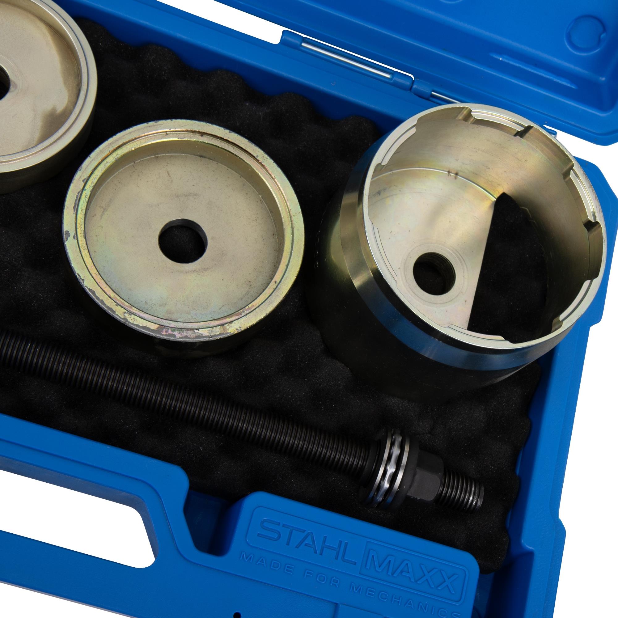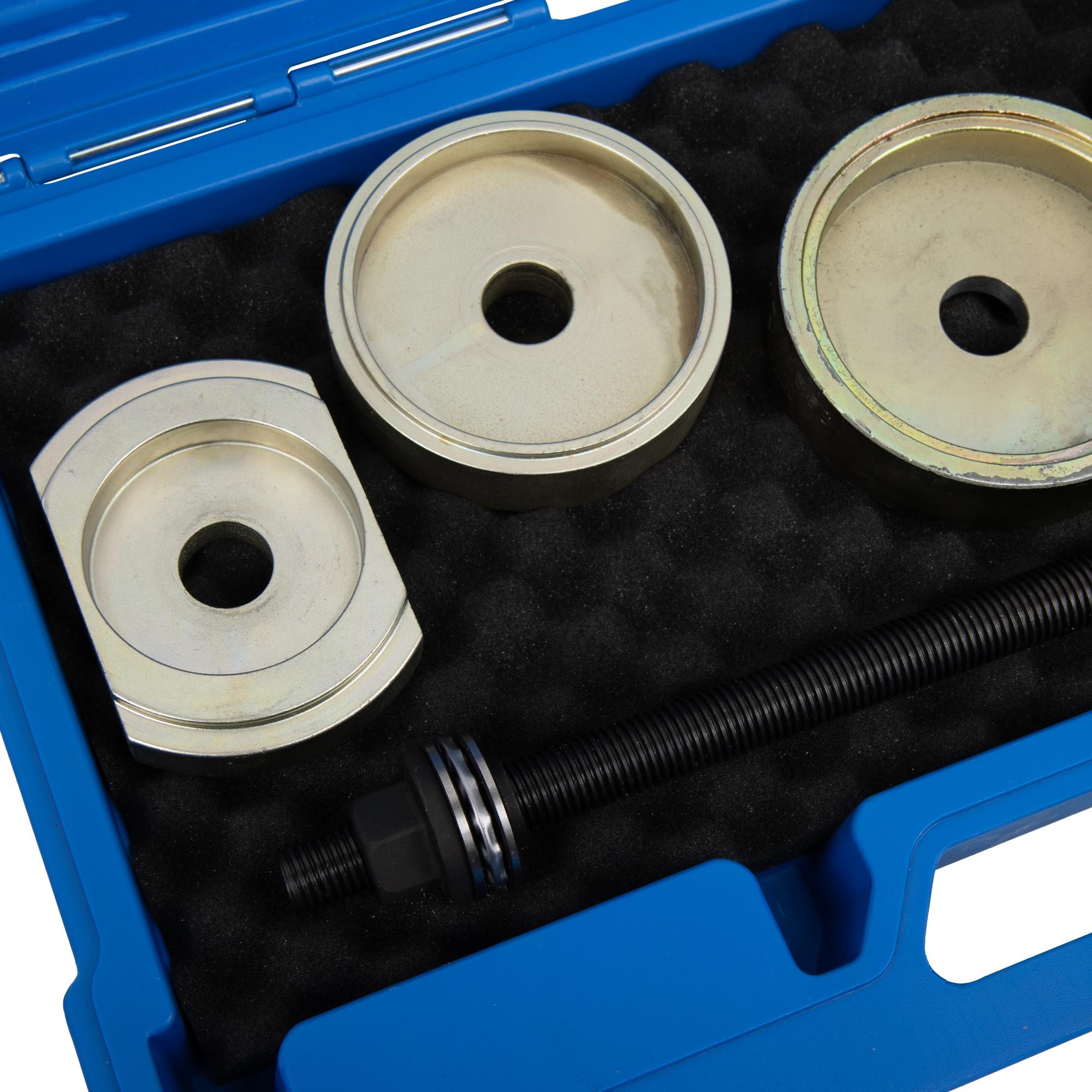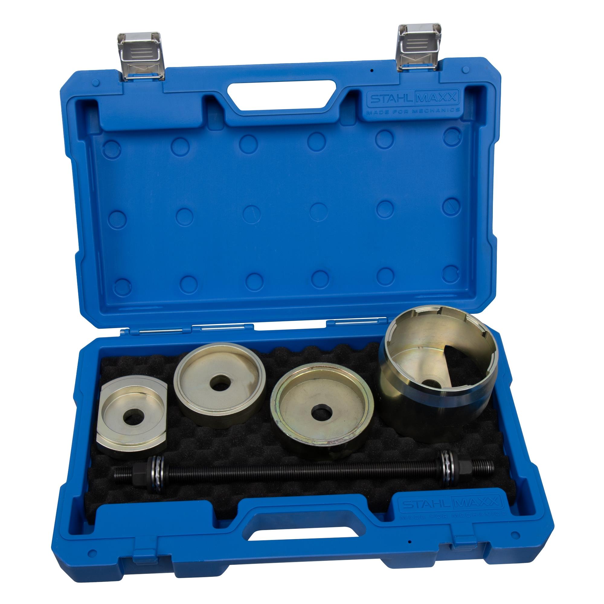 Spezialwerkzeugsatz zur De- und Montage der Lagerbuchsen im Aggregateträger an der Vorderachse und Hinterachse.