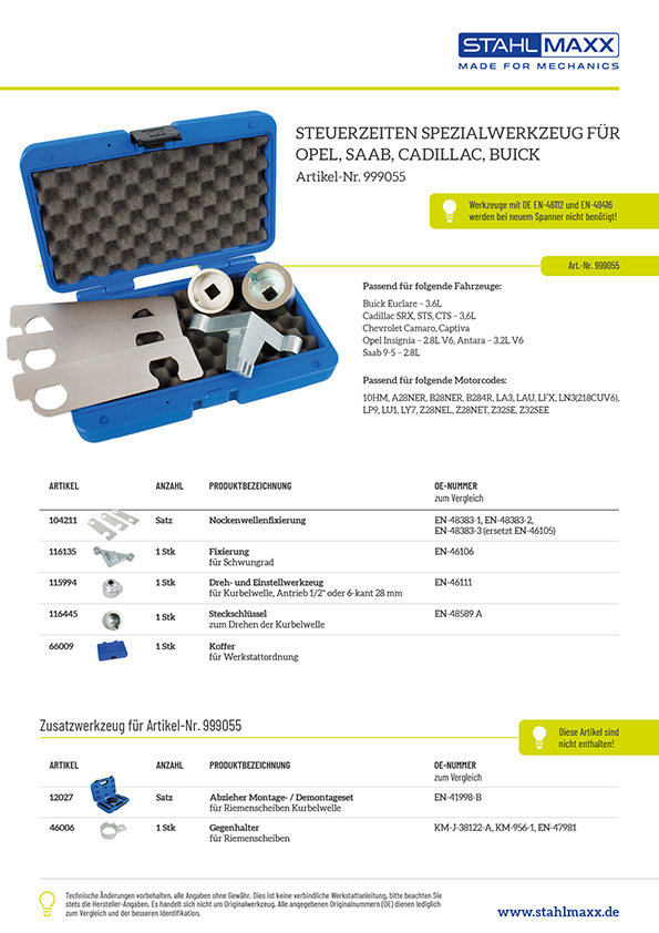 Weiterführende Links zu "Steuerzeiten Werkzeug für Opel Insignia Saab 9-5 2,8 Cadillac Buick Euclare 3,6L – Leihwerkzeug"
