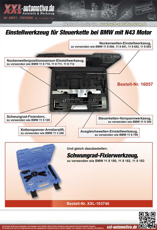 Vergleichsnummern zu "Steuerzeiten Werkzeug für BMW N43 - Leihwerkzeug"